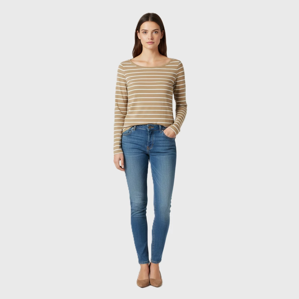 A termékfotón ábrázolt modell nem valós személy, mindössze az MI közreműködése által generált szimuláció és kifejezetten azt a célt szolgálja, hogy a ruhadarab egy outfit részeként történő viselés közben is bemutatásra kerüljön.