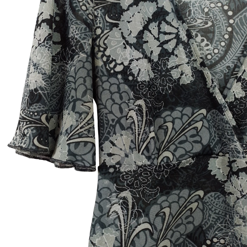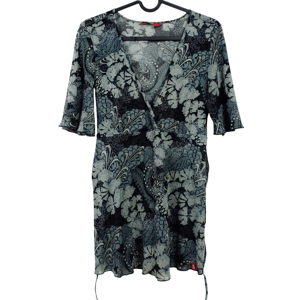Virágmintás, derékrészén gumis, mellrészén fodros női felső