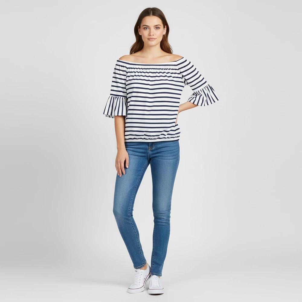 Egyedi jellemző(k): csíkos, ujja végén fodros, nyakrészén és alján gumis