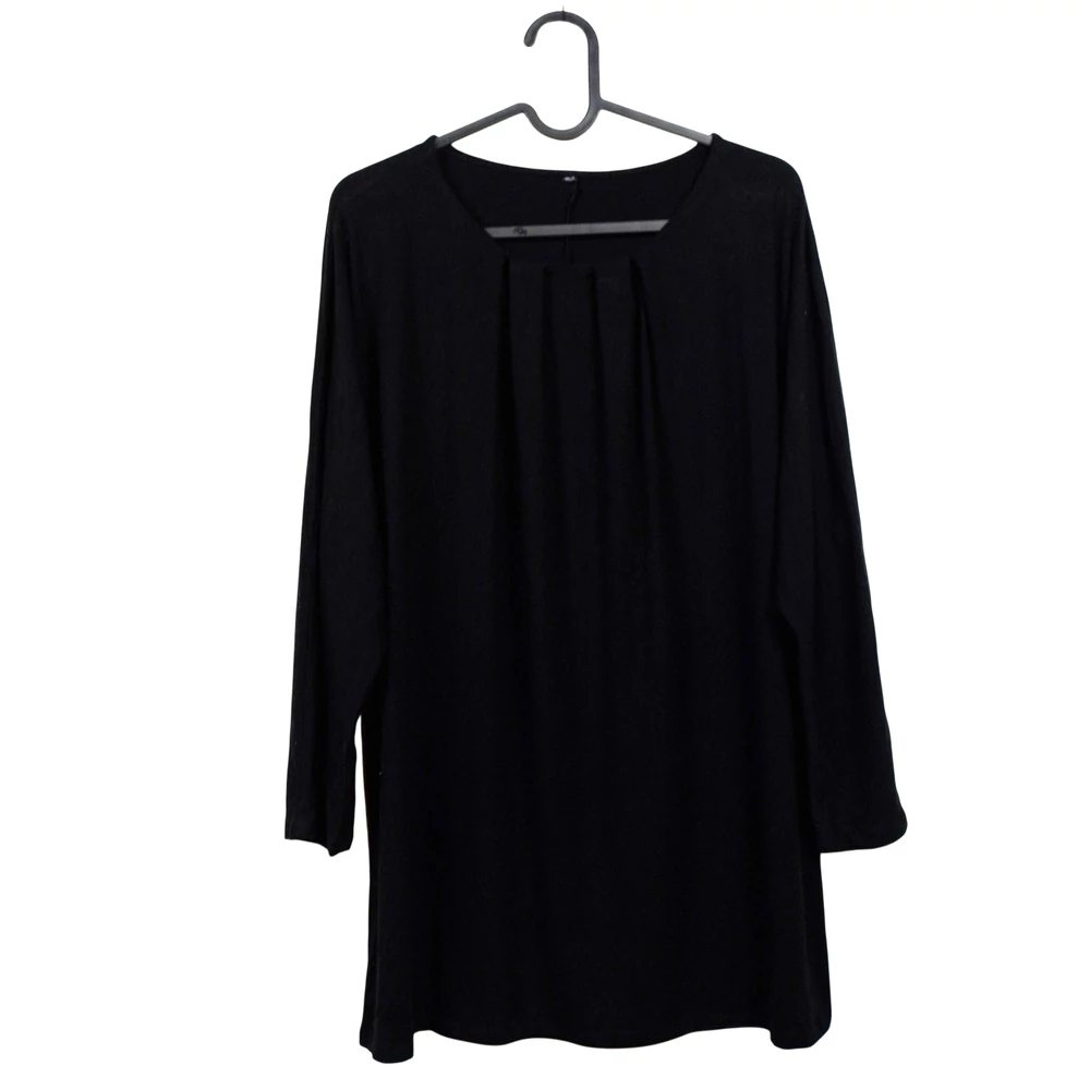 Mellrészén gombos, alján oldalt hosszított, mintás női felső
