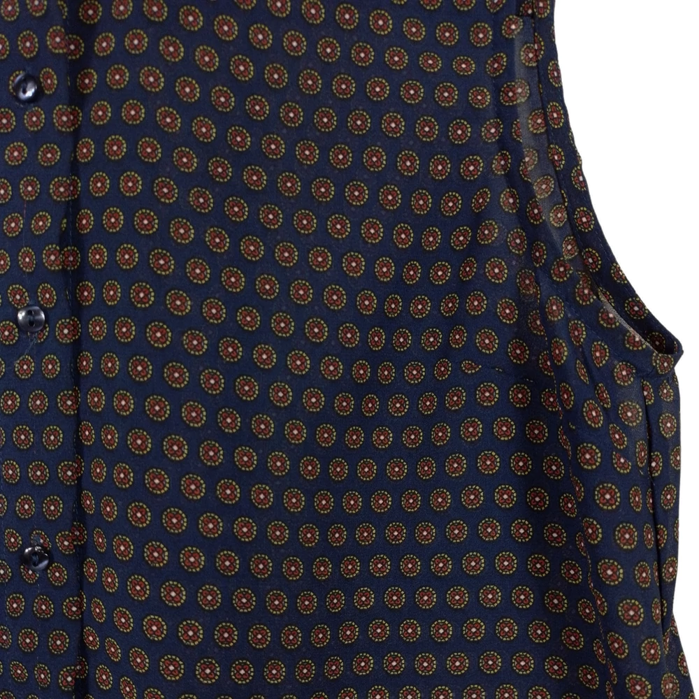 Elején ejtett anyagú, egyik oldalán húzott varrású, mintás női felső