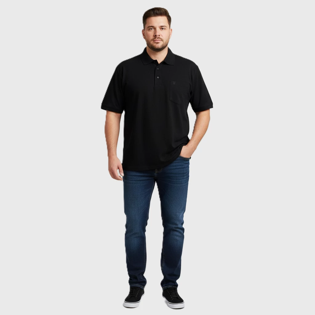 Háta alján zsebes, elején cipzáras, mintás (kerékpáros) férfi póló