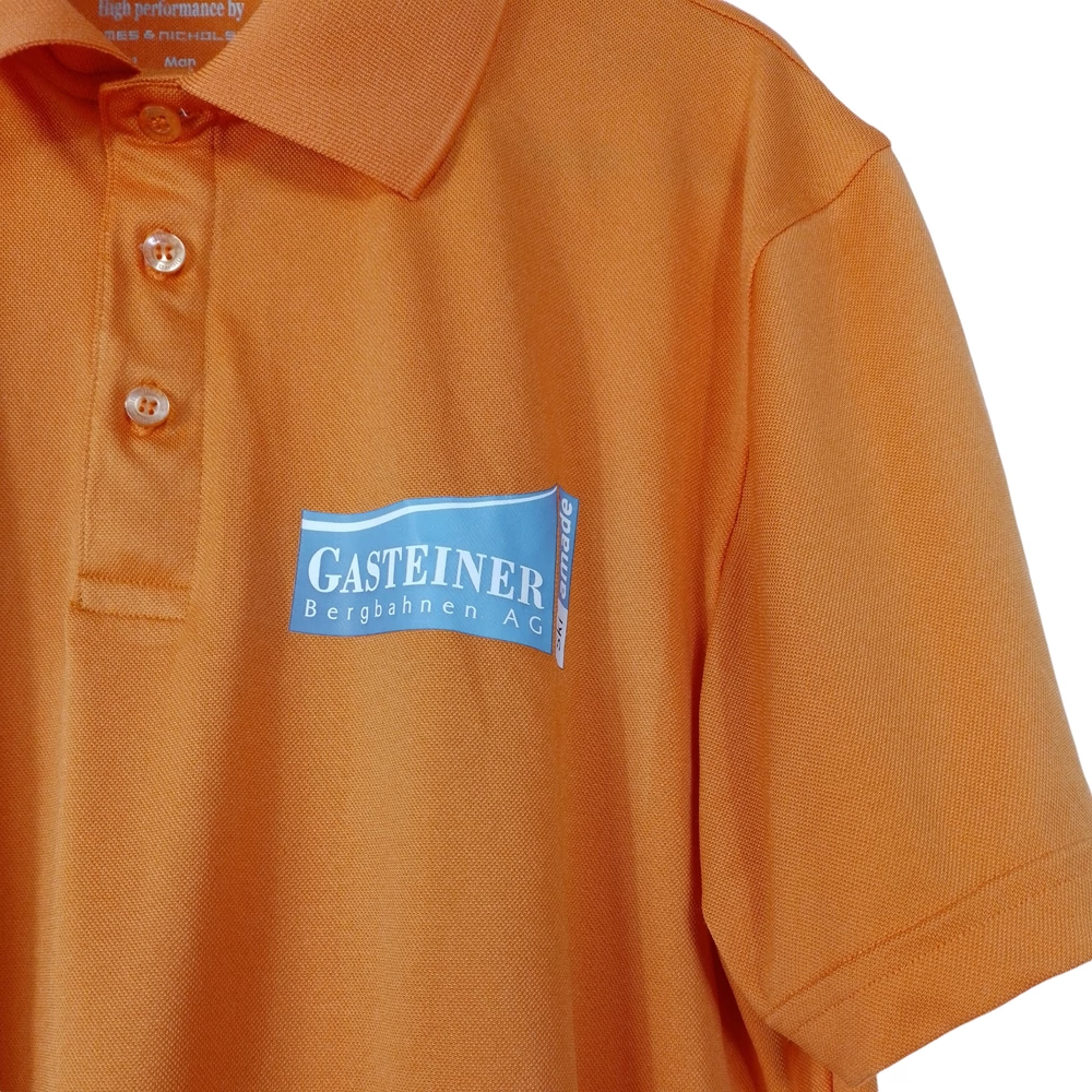 Galléros, elején gombos, hátsó részén feliratos férfi felső