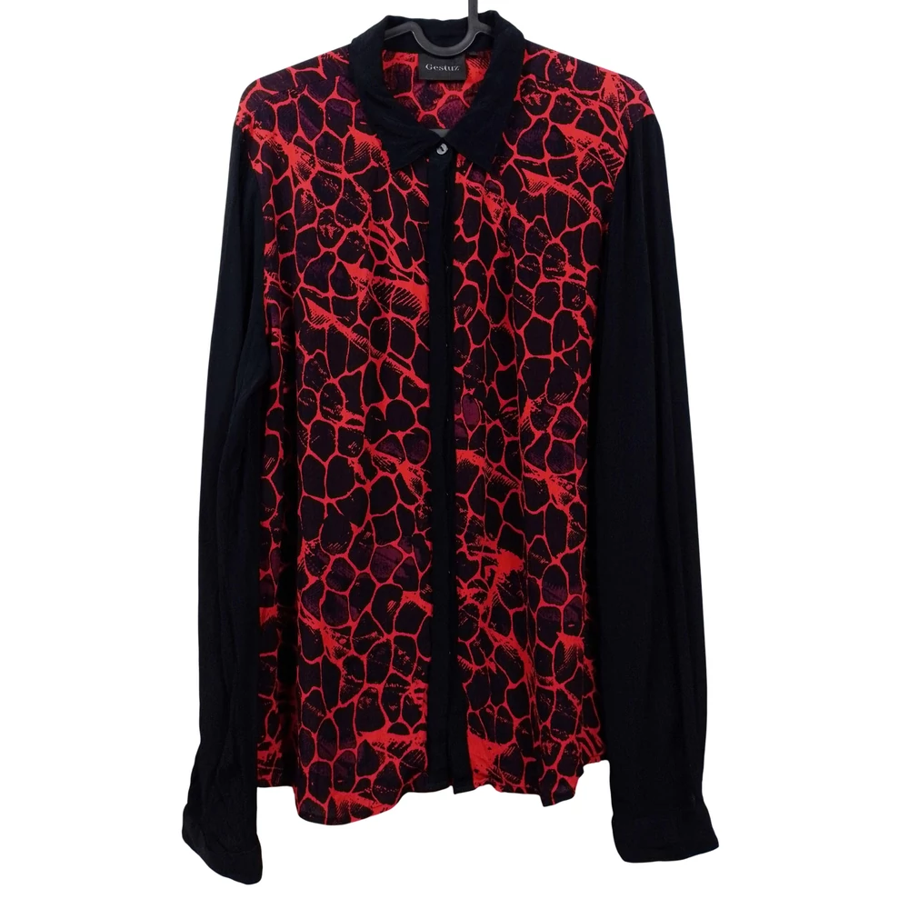 Hátulján hosszított, mintás női felső