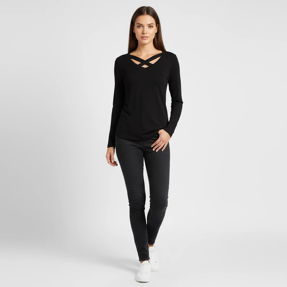 Glitz, fekete színű, hosszú ujjú női felső, S méret