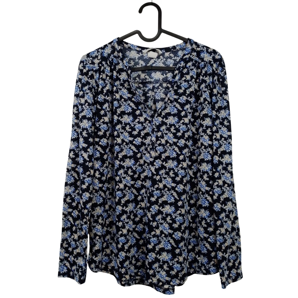 Elején ejtett anyagú, egyik oldalán húzott varrású, mintás női felső