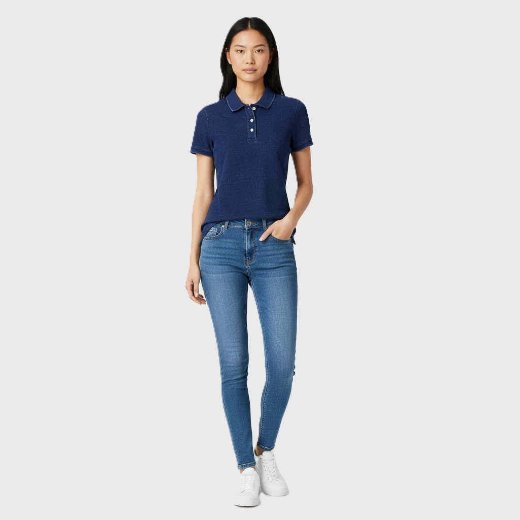 Egyedi jellemző(k): mellrészén gombos, galléros, koptatott farmer hatású