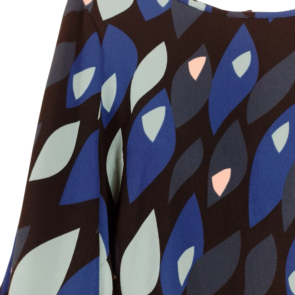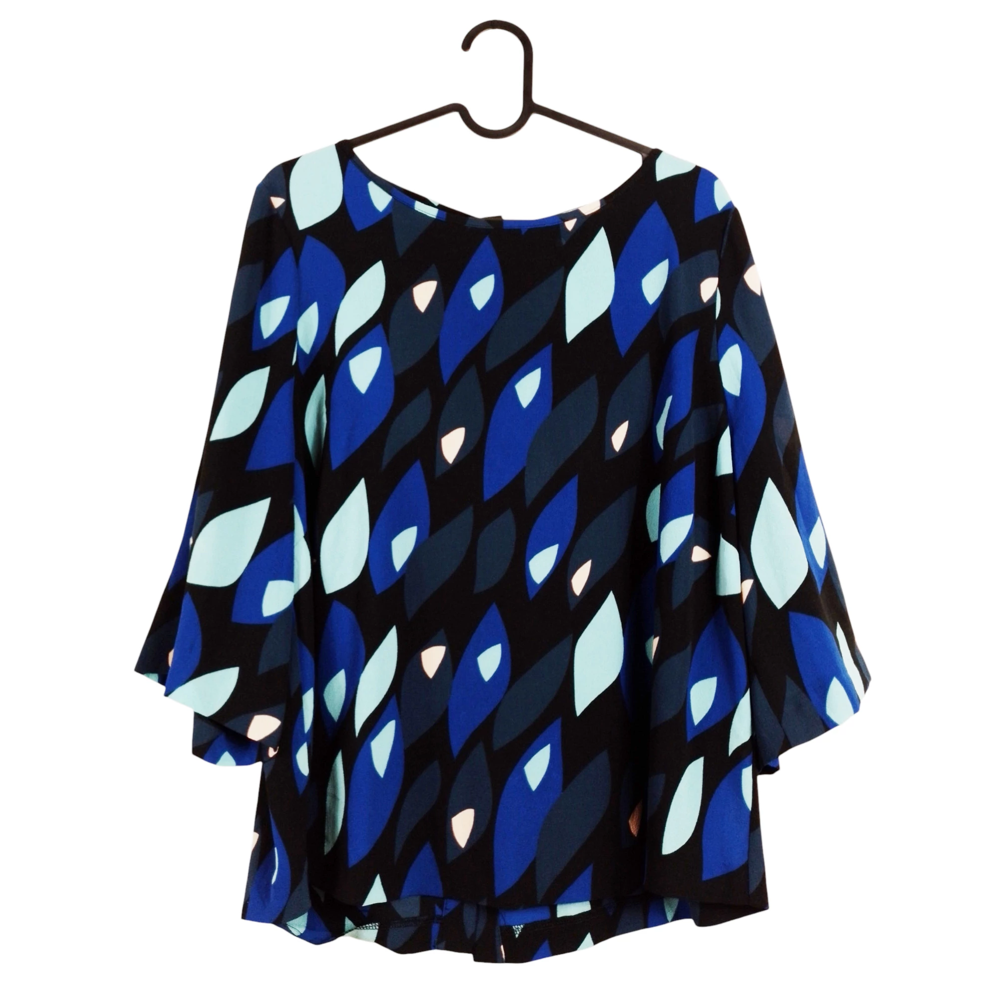 Nyakrészén, ujja végén és alján gumis, rövid fazonú női felső