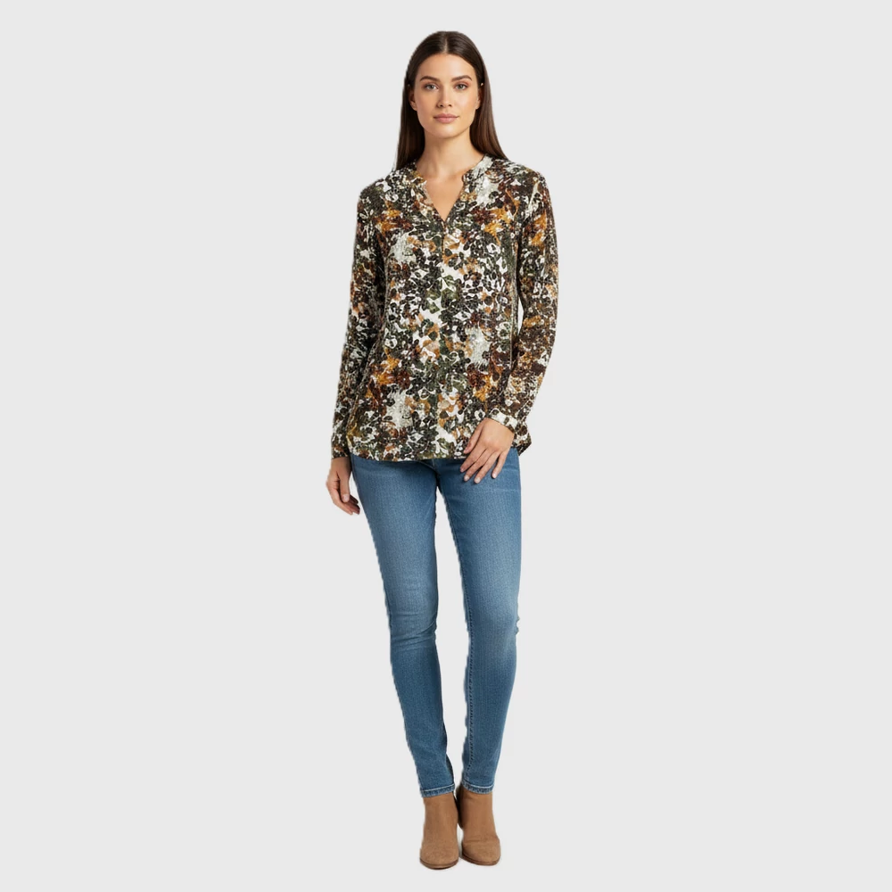 Hátul cipzáras, aranyszínű mintával díszített, bélelt női felső
