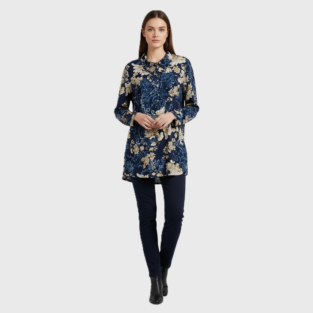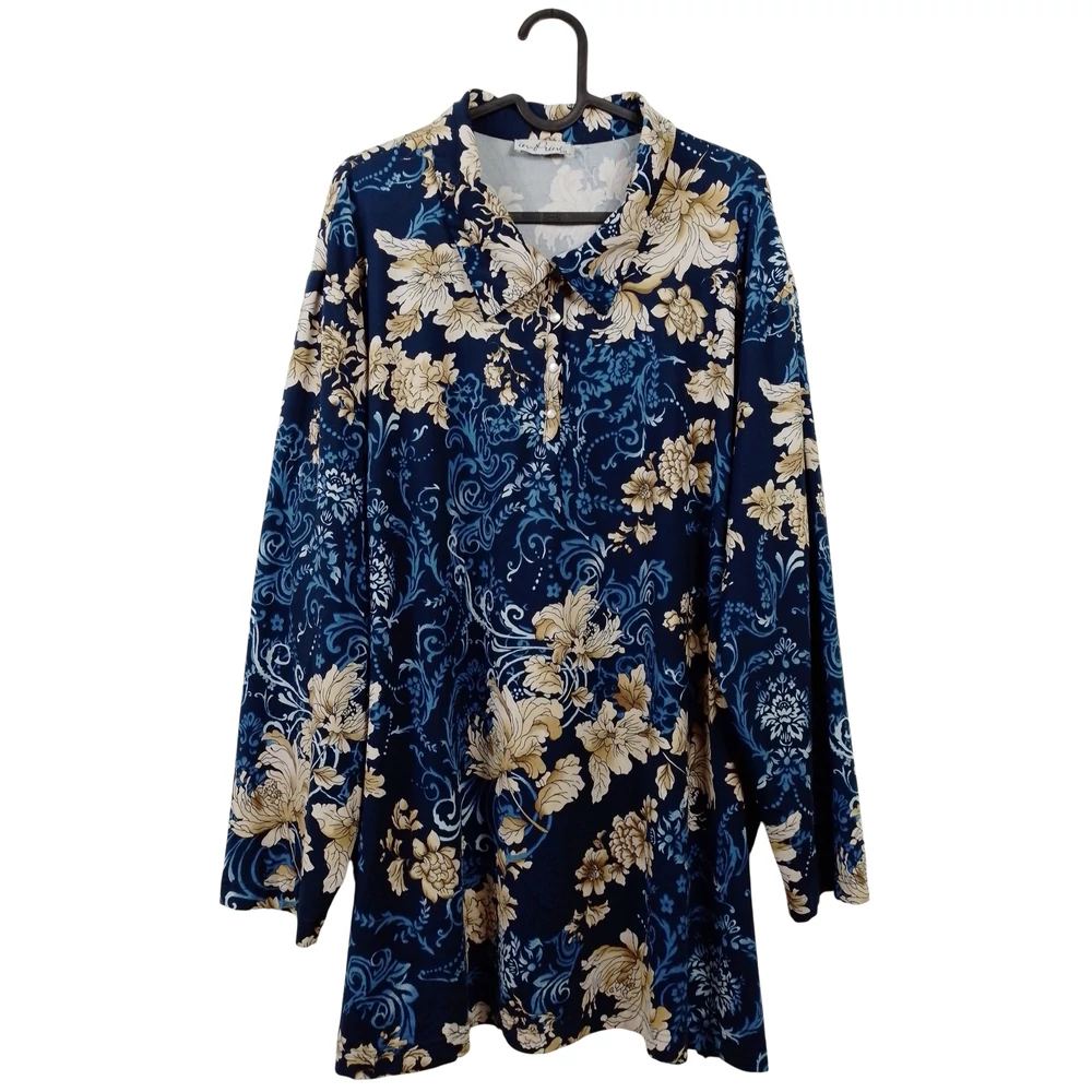 Elején gombos, virágmintás női felső