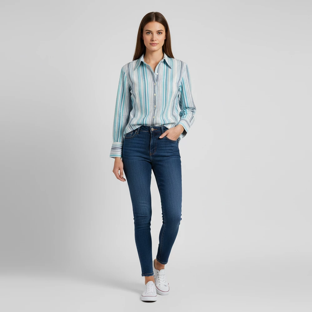 A termékfotón ábrázolt modell nem valós személy, mindössze az MI közreműködése által generált szimuláció és kifejezetten azt a célt szolgálja, hogy a ruhadarab egy outfit részeként történő viselés közben is bemutatásra kerüljön.
