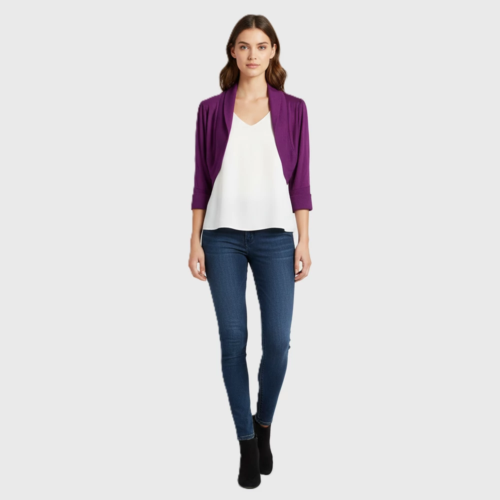 Kötött, elején nyitott, rövid fazonú női felső