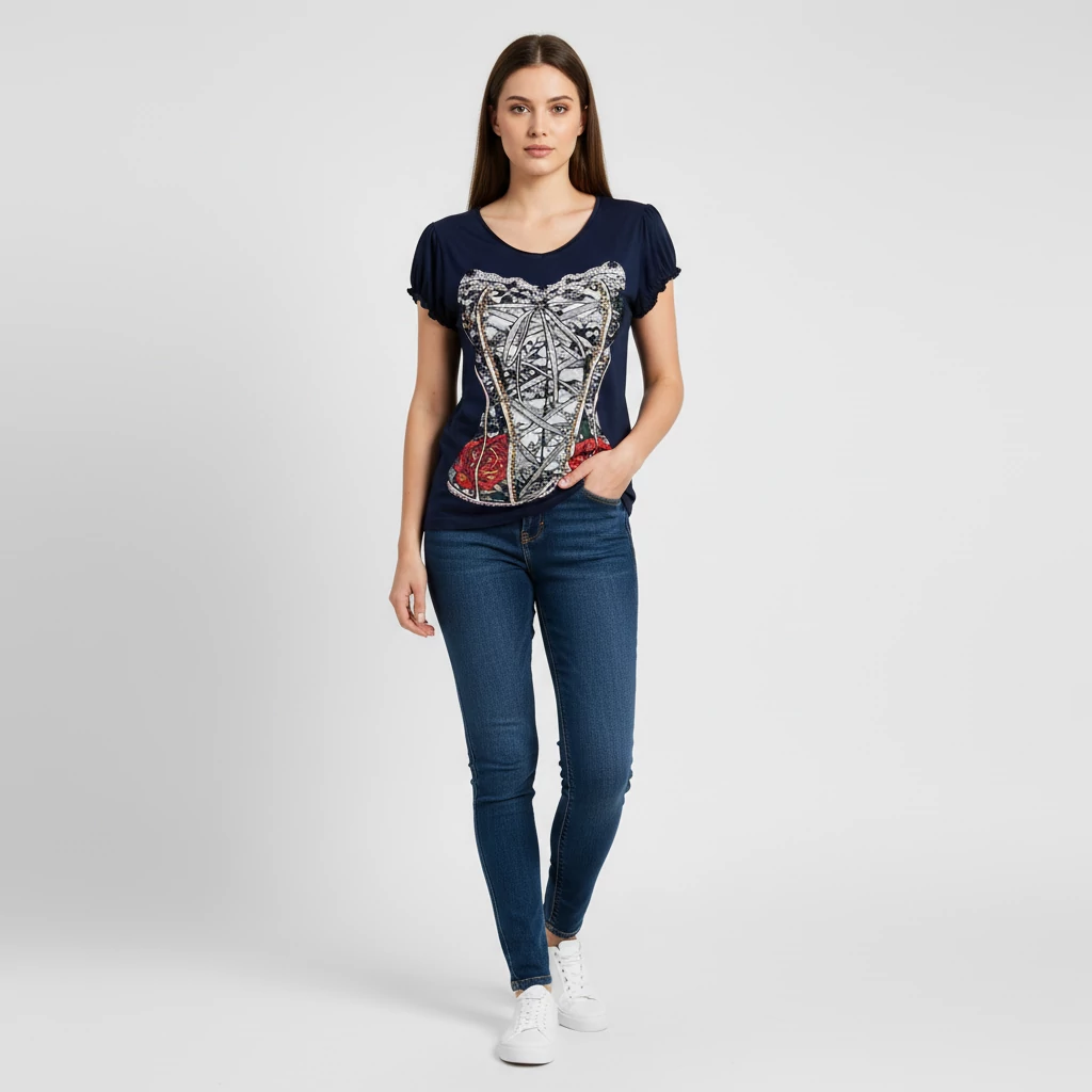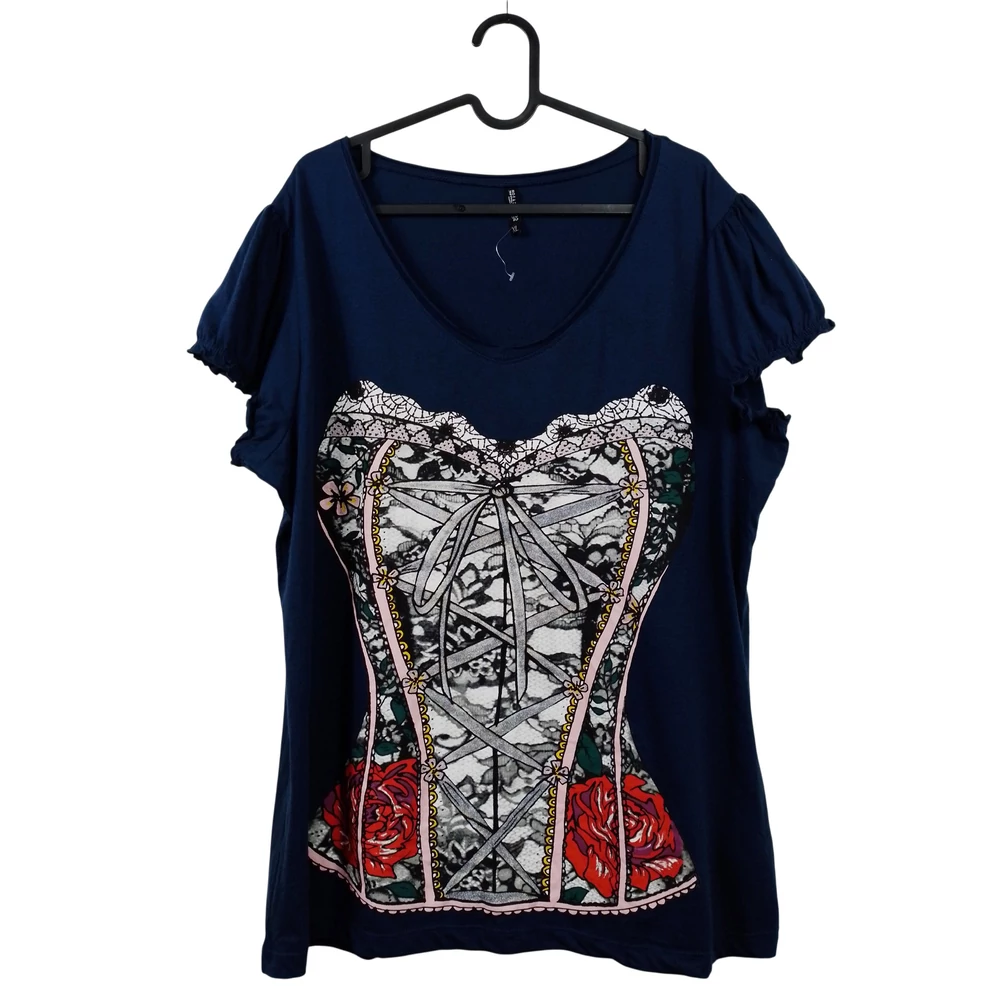Atelier, sötétkék színű, rövid ujjú női felső, XL méret