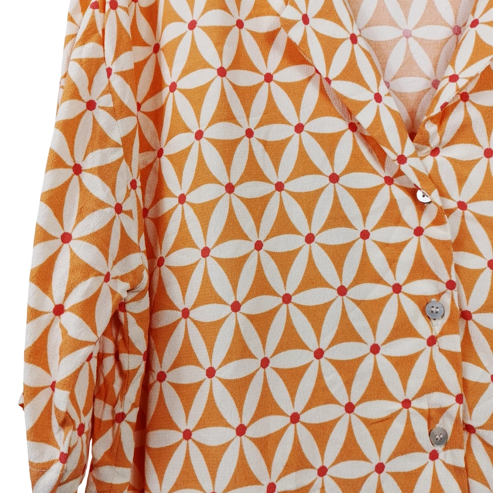 Rejtett gombolású, mintás női felső