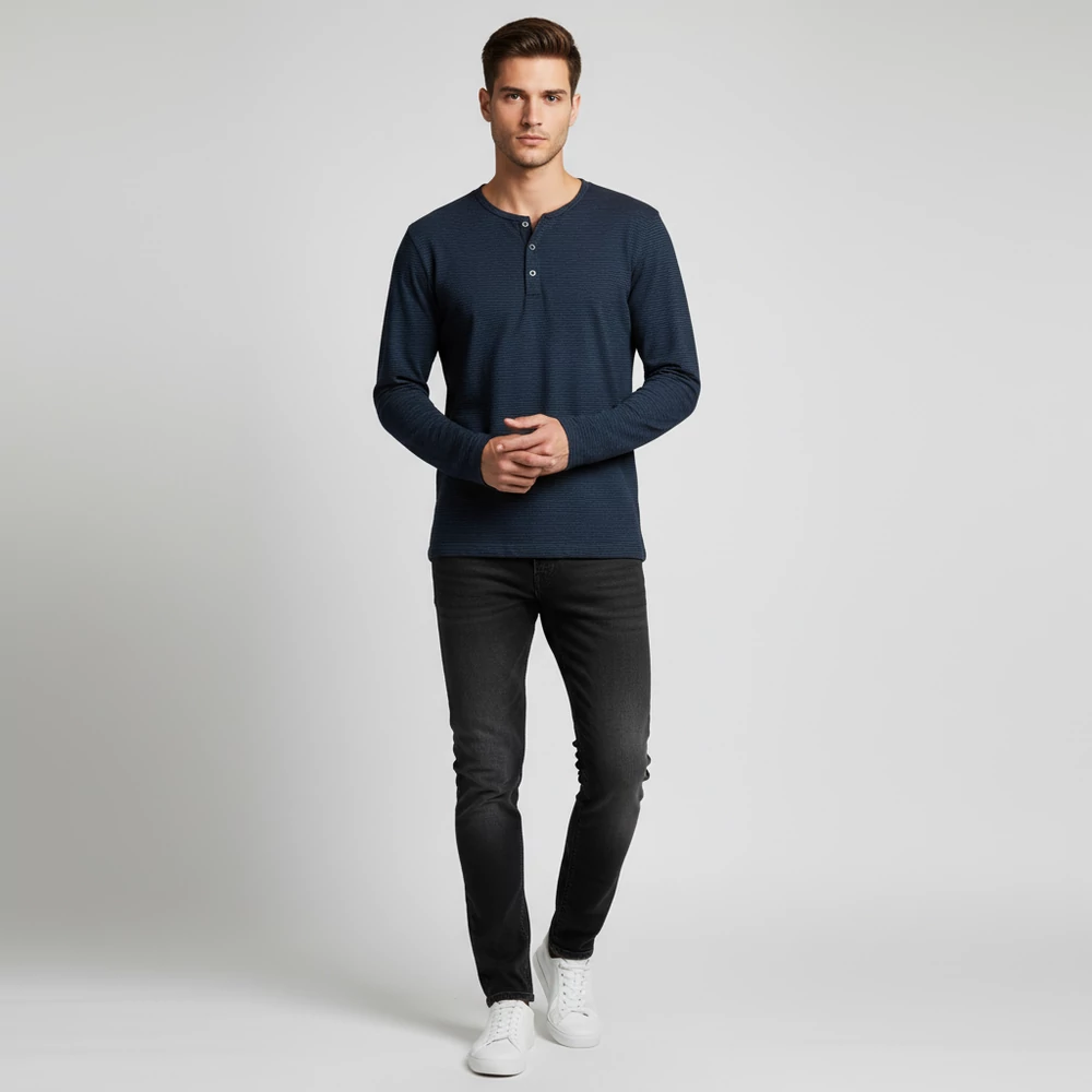A termékfotón ábrázolt modell nem valós személy, mindössze az MI közreműködése által generált szimuláció és kifejezetten azt a célt szolgálja, hogy a ruhadarab egy outfit részeként történő viselés közben is bemutatásra kerüljön.