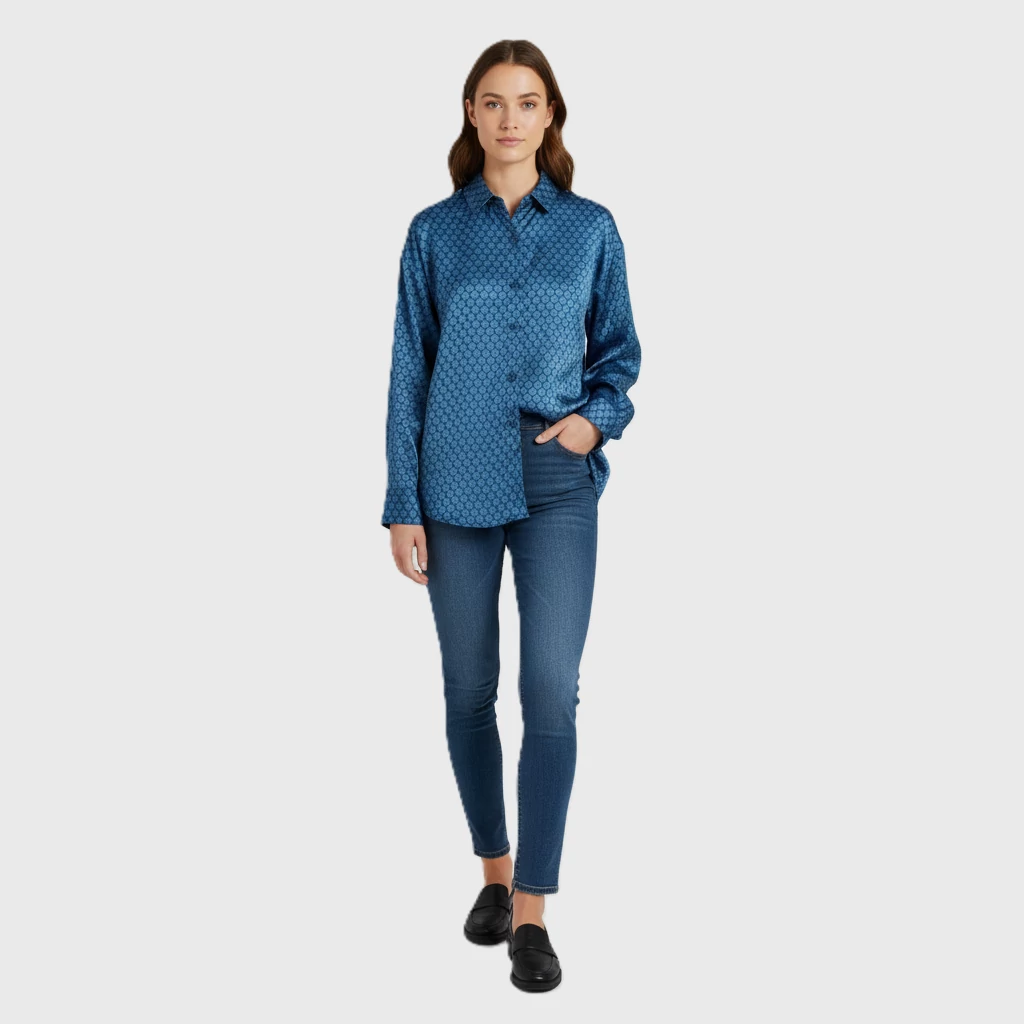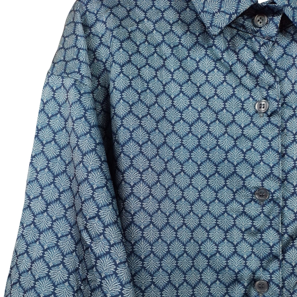 Virágmintás, derékrészén gumis, mellrészén fodros női felső