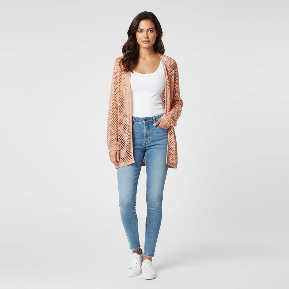 A termékfotón ábrázolt modell nem valós személy, mindössze az MI közreműködése által generált szimuláció és kifejezetten azt a célt szolgálja, hogy a ruhadarab egy outfit részeként történő viselés közben is bemutatásra kerüljön.