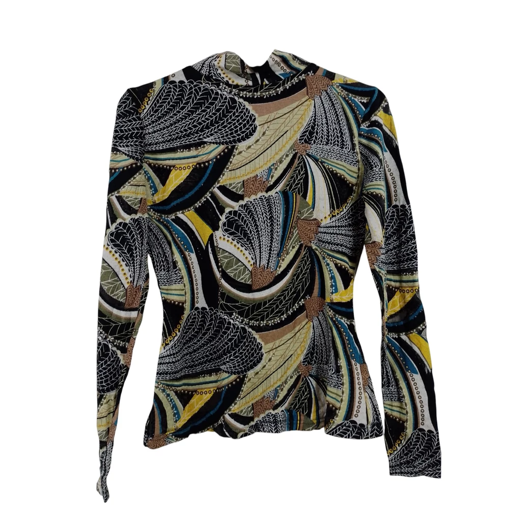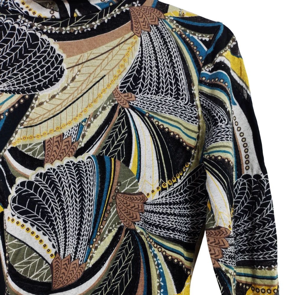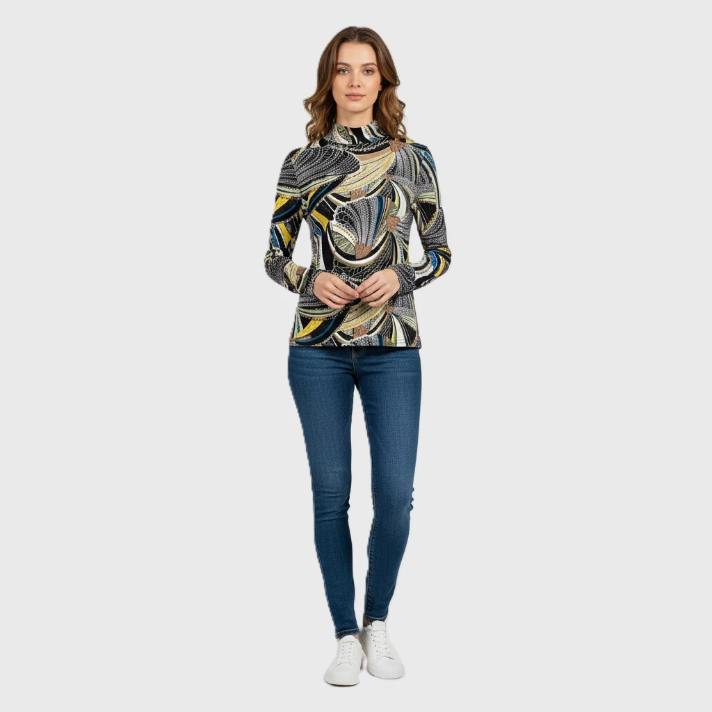 Magas nyakú, mintás női felső