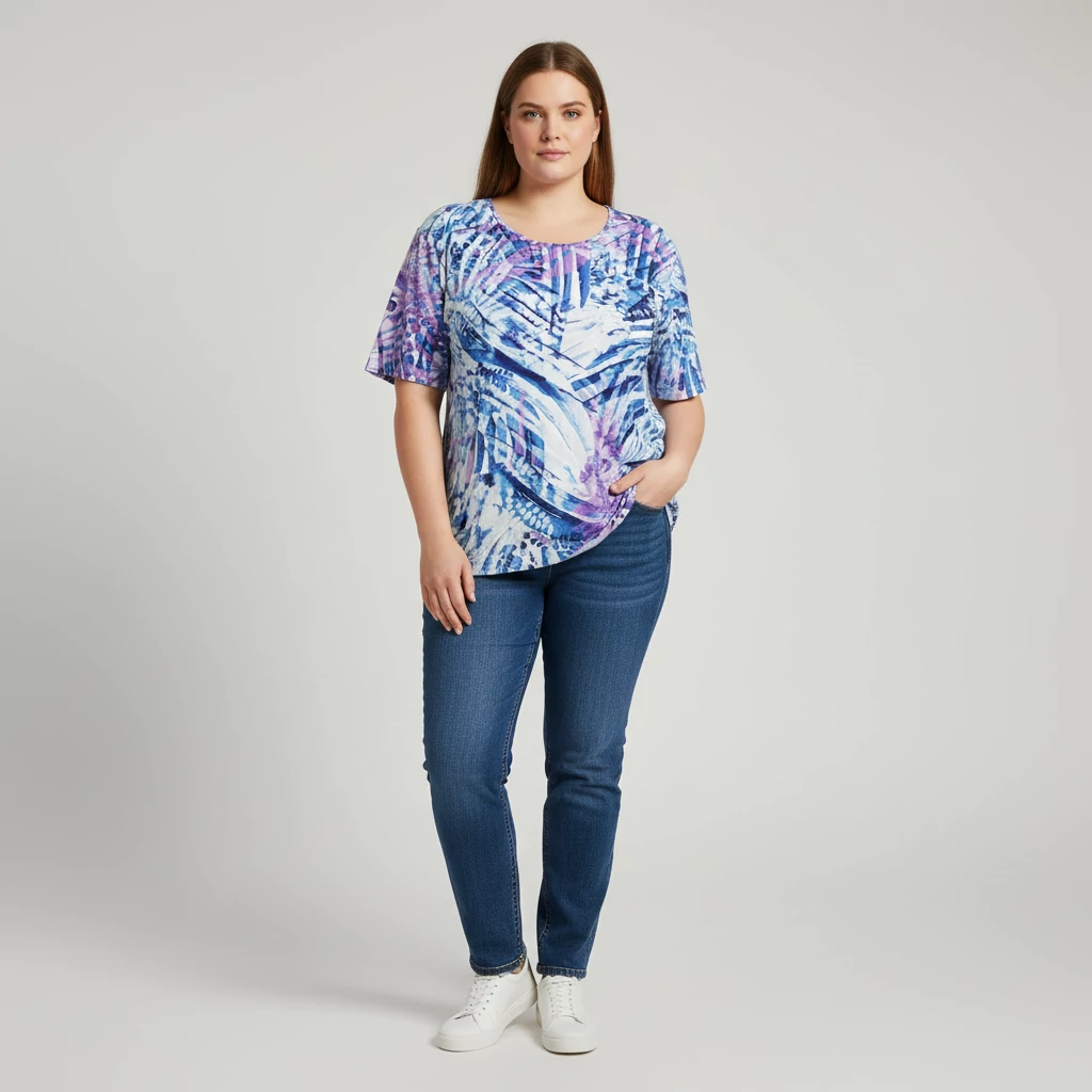 M&Mode, mintás, rövid ujjú női felső, XXL méret