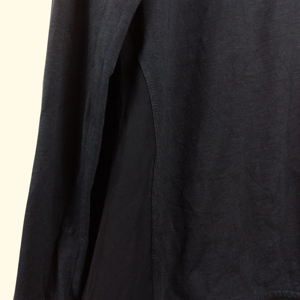 Ujja végén hajtókás, oldalán húzott varrású női felső
