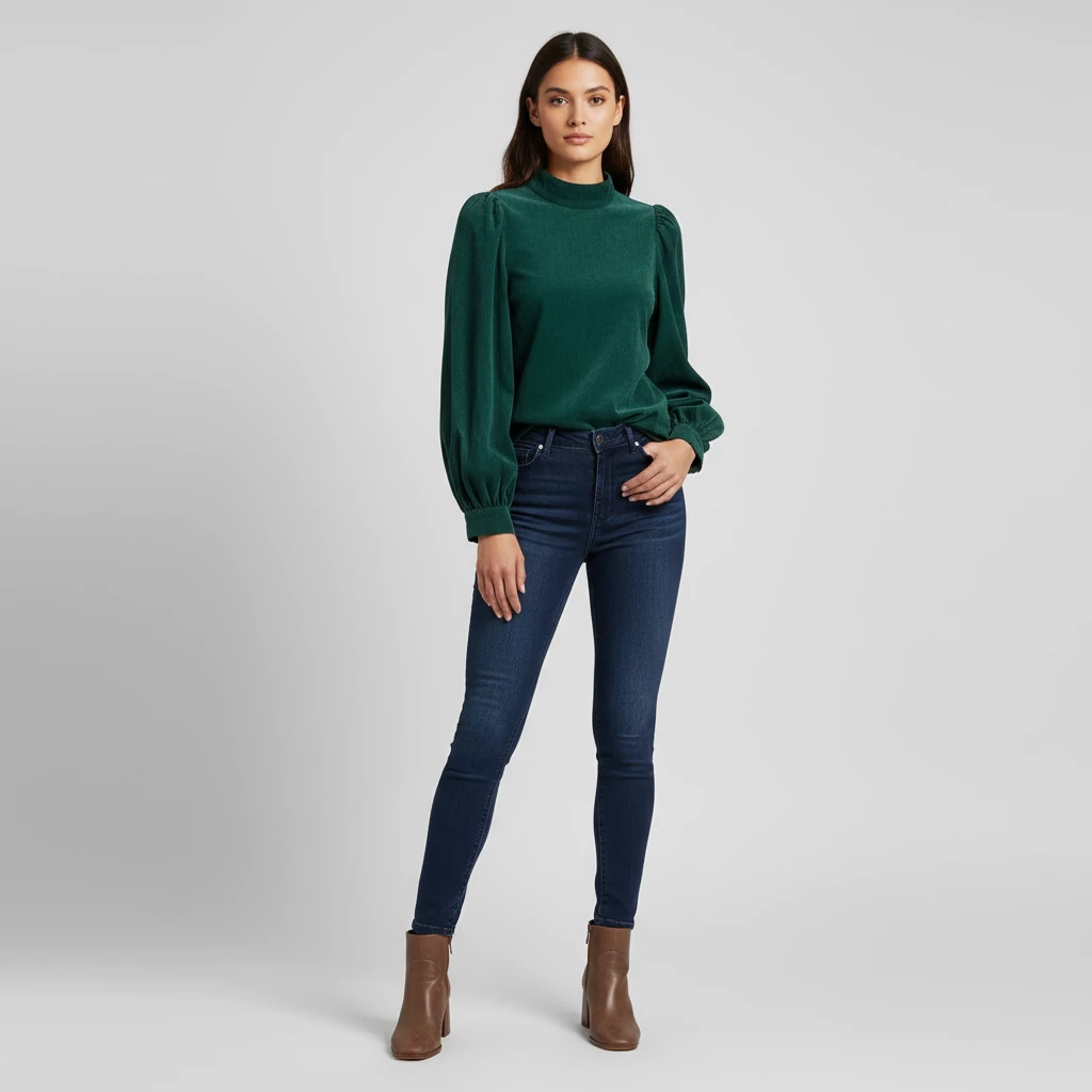 A termékfotón ábrázolt modell nem valós személy, mindössze az MI közreműködése által generált szimuláció és kifejezetten azt a célt szolgálja, hogy a ruhadarab egy outfit részeként történő viselés közben is bemutatásra kerüljön.
