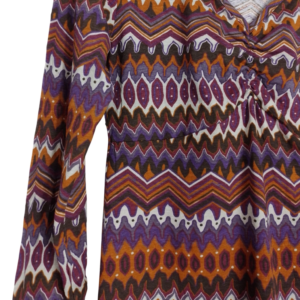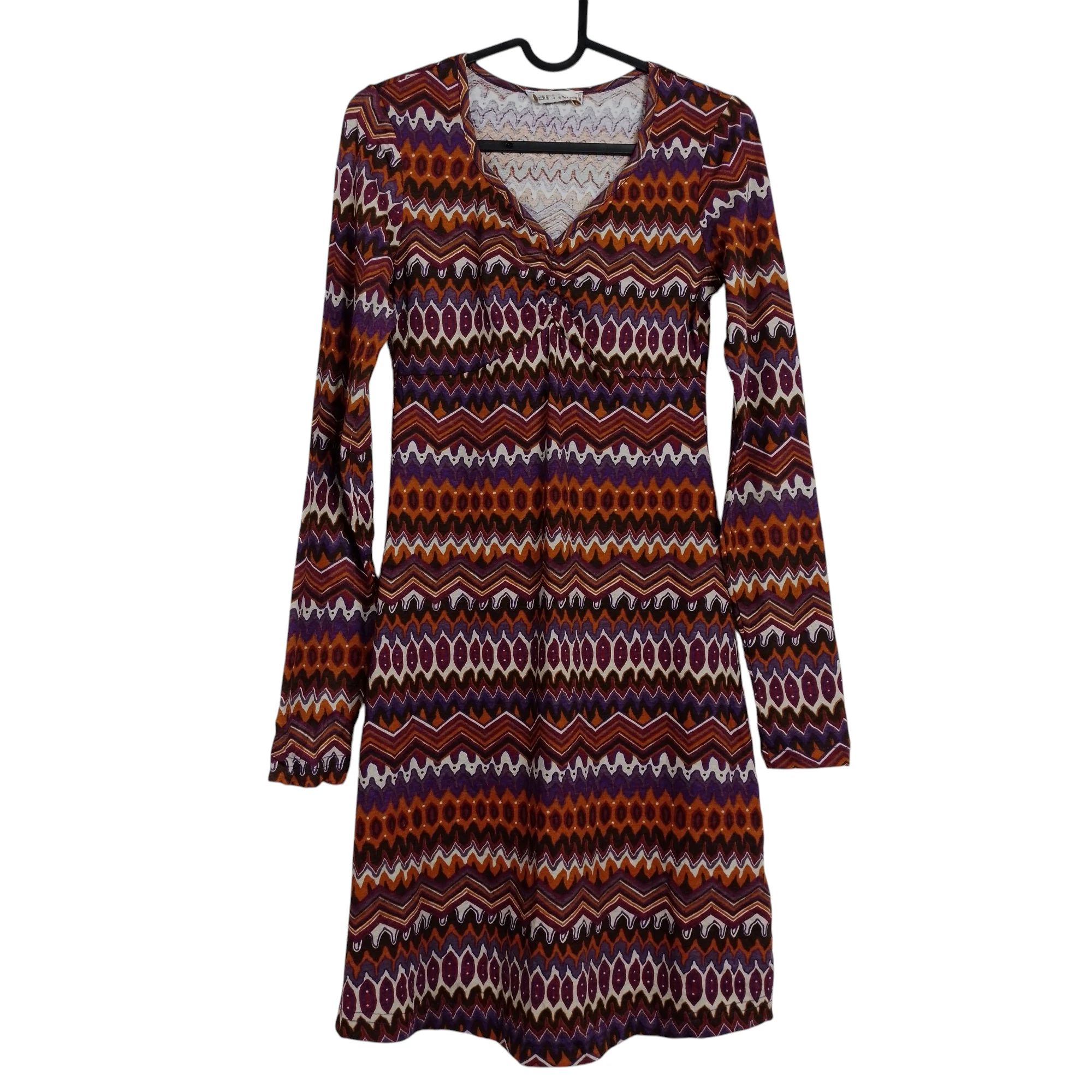Hátrészén cipzáras derékrésze alatt mintás, bélelt női egész ruha