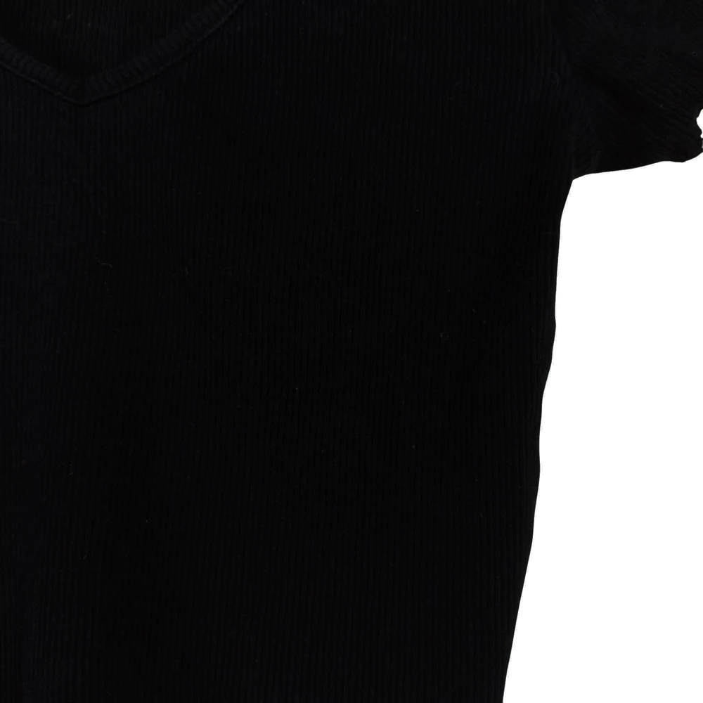 Nyakrészén ezüstszállal díszített, csípőrészén gumis női felső