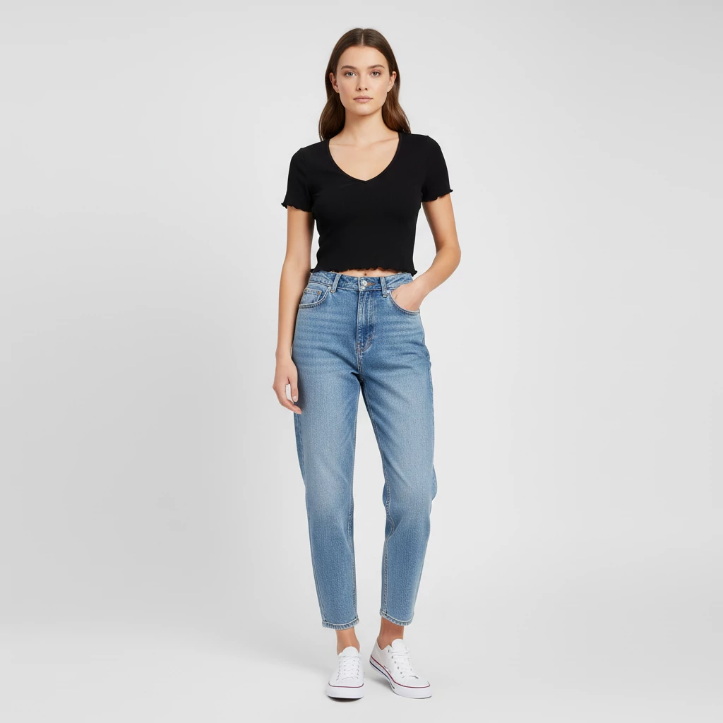 A termékfotón ábrázolt modell nem valós személy, mindössze az MI közreműködése által generált szimuláció és kifejezetten azt a célt szolgálja, hogy a ruhadarab egy outfit részeként történő viselés közben is bemutatásra kerüljön.