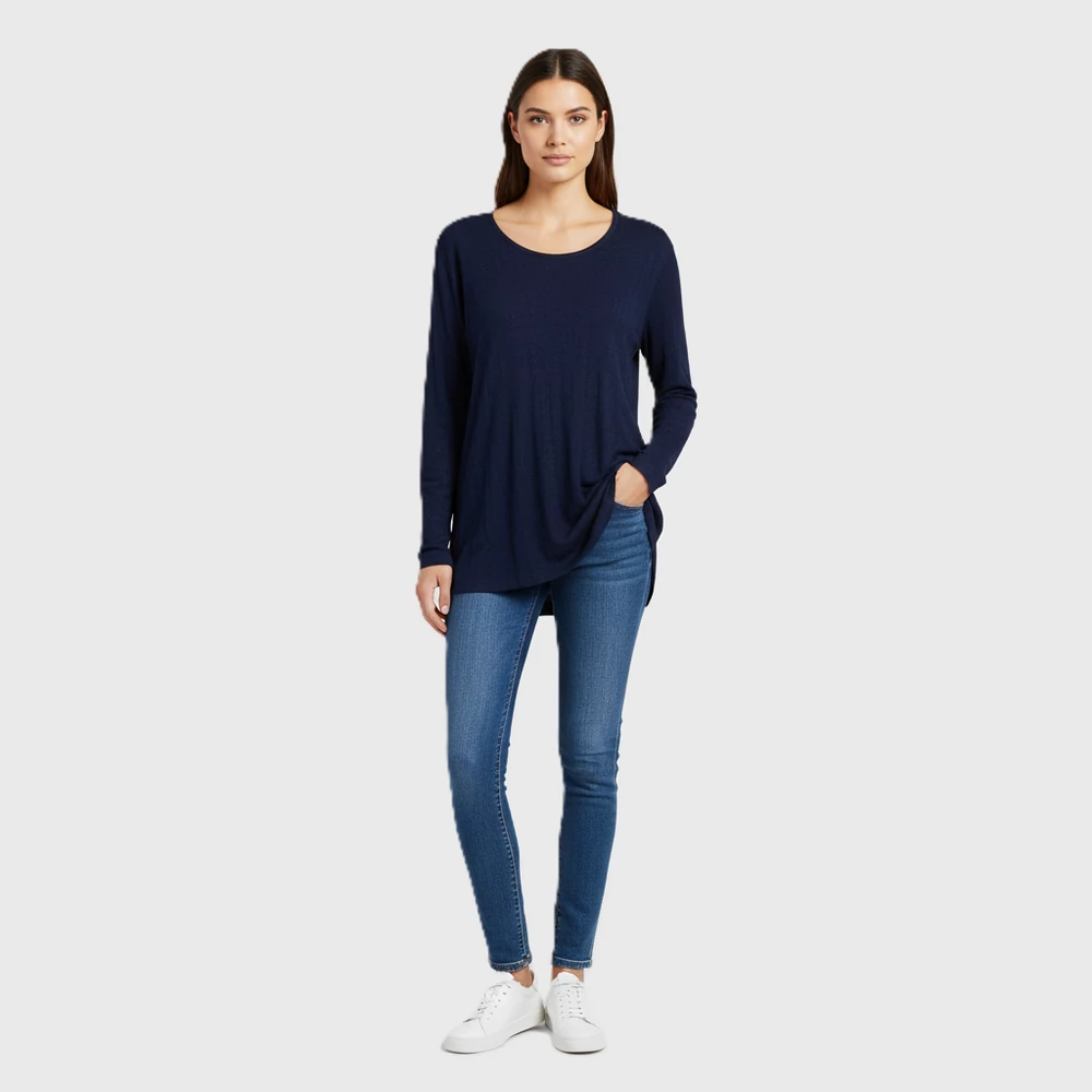 Mikrobordázott anyagból készült, hosszú fazonú női felső