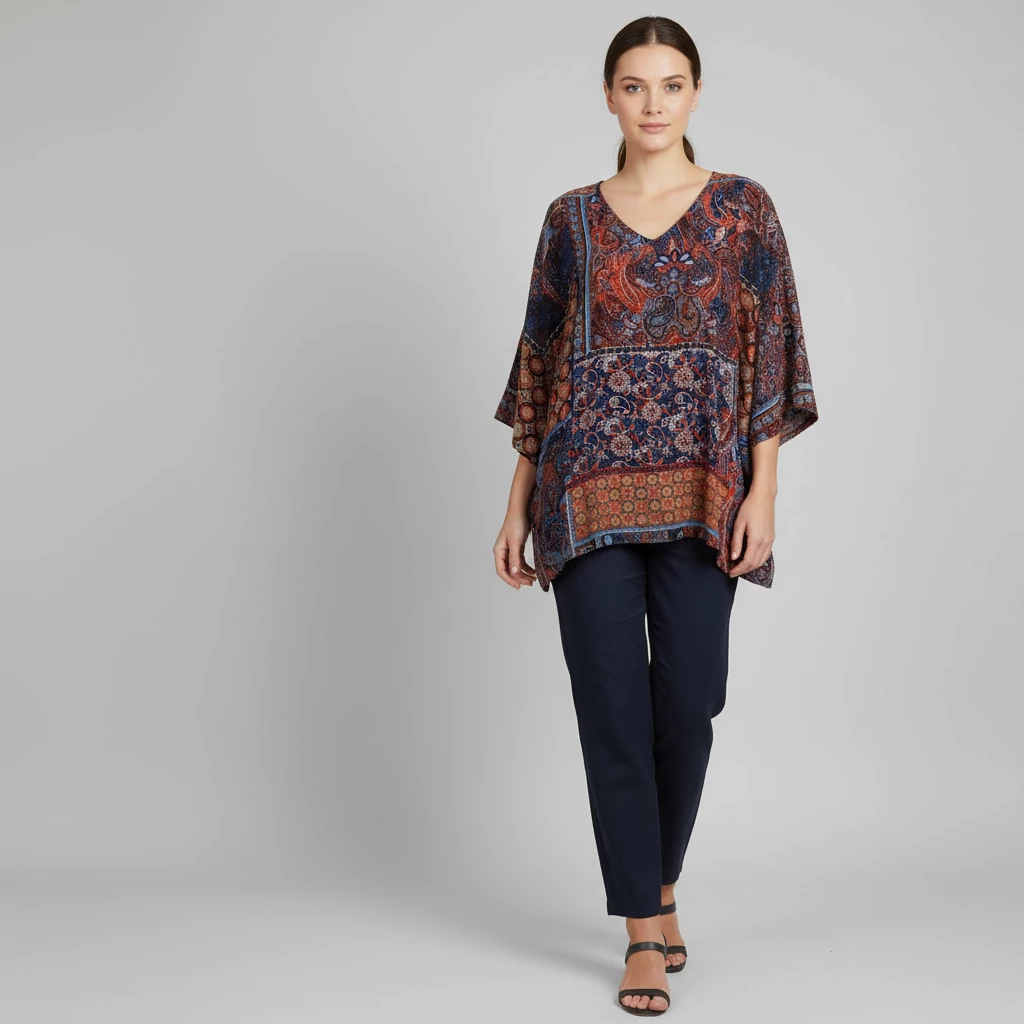Atelier, sötétkék színű, rövid ujjú női felső, XL méret