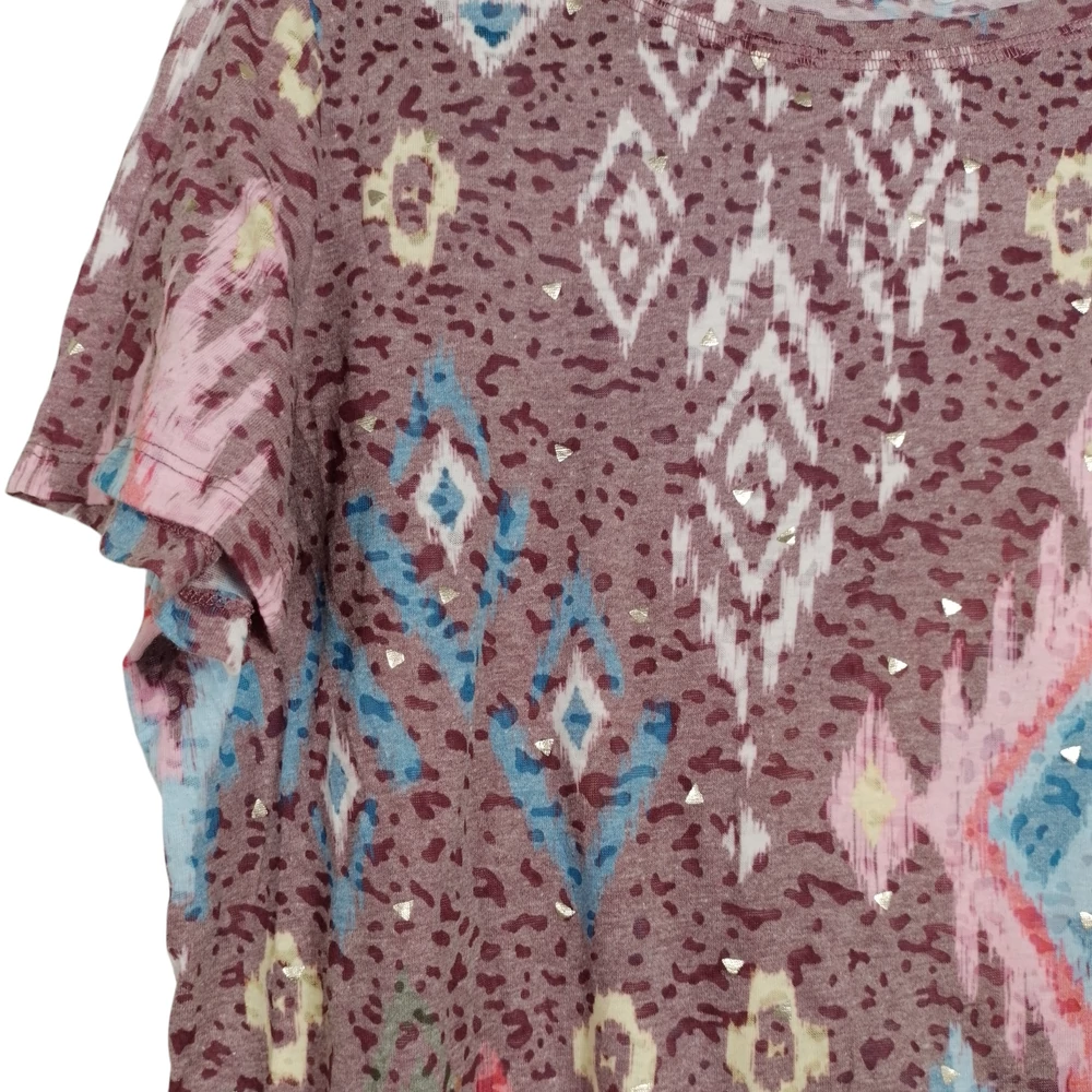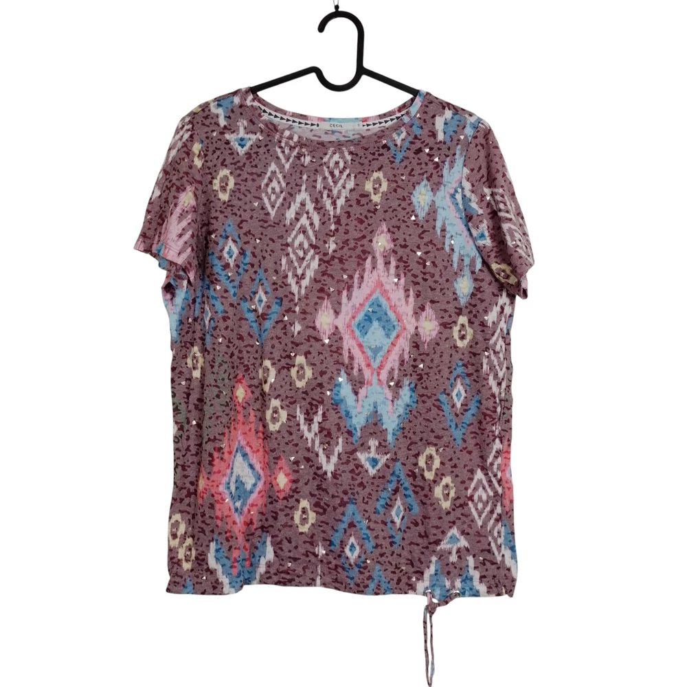 Duplahatású, elején ejtett anyagú, mintás női felső