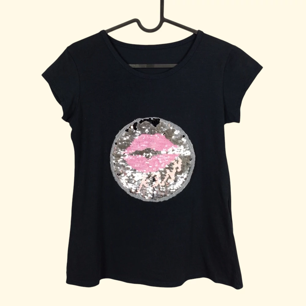 Spagettipántos, mellrészén strasszkővel és flitterrel díszített női felső
