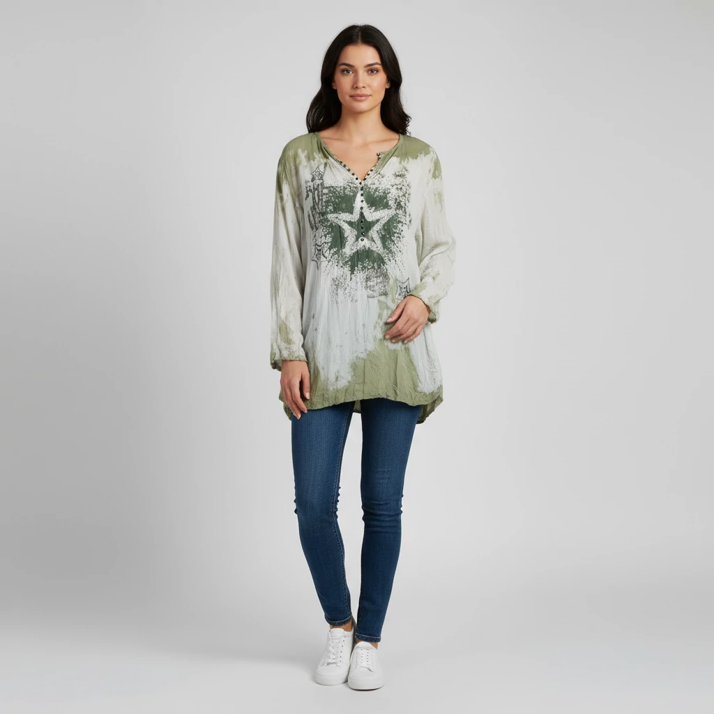 A termékfotón ábrázolt modell nem valós személy, mindössze az MI közreműködése által generált szimuláció és kifejezetten azt a célt szolgálja, hogy a ruhadarab egy outfit részeként történő viselés közben is bemutatásra kerüljön.