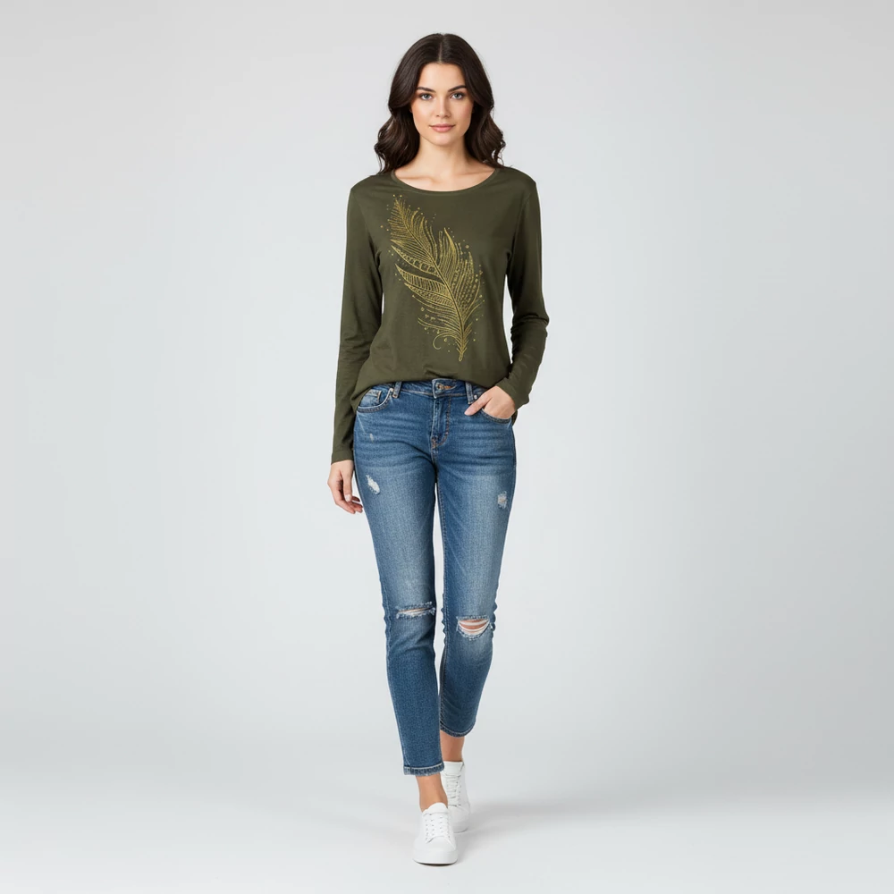 Rugalmas anyagú, mintás női felső