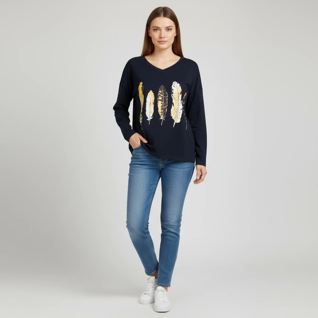 Mintás, hosszú ujjú női felső, M méret