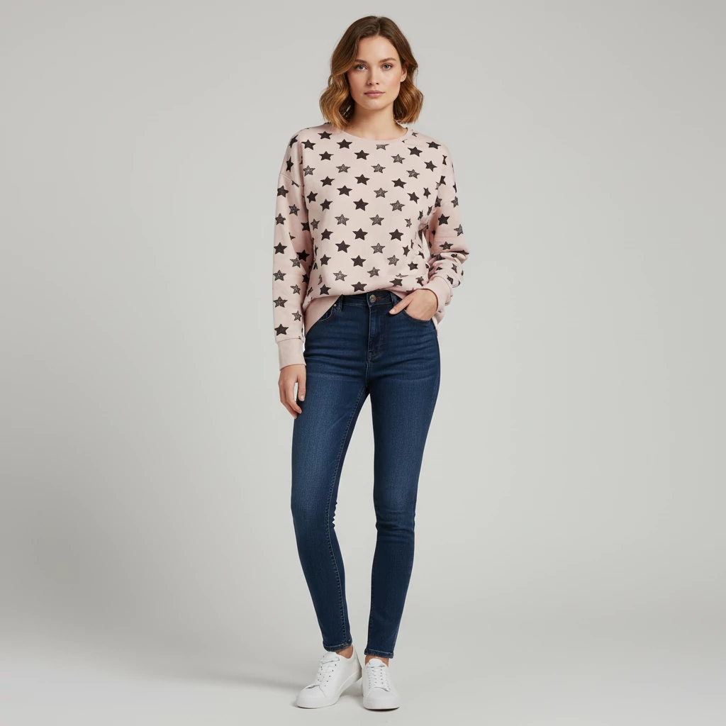 A termékfotón ábrázolt modell nem valós személy, mindössze az MI közreműködése által generált szimuláció és kifejezetten azt a célt szolgálja, hogy a ruhadarab egy outfit részeként történő viselés közben is bemutatásra kerüljön.