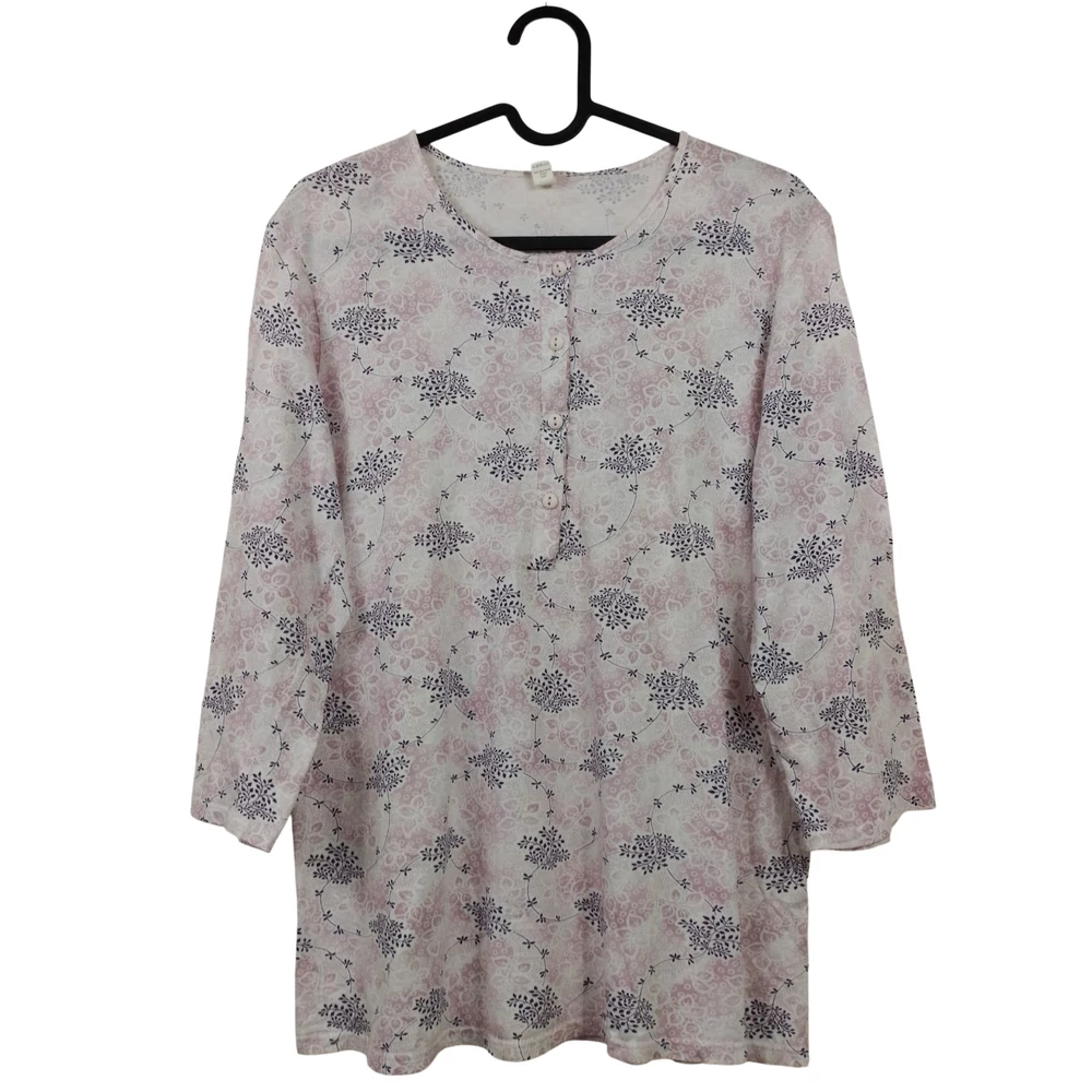 Virágmintás, derékrészén gumis, mellrészén fodros női felső