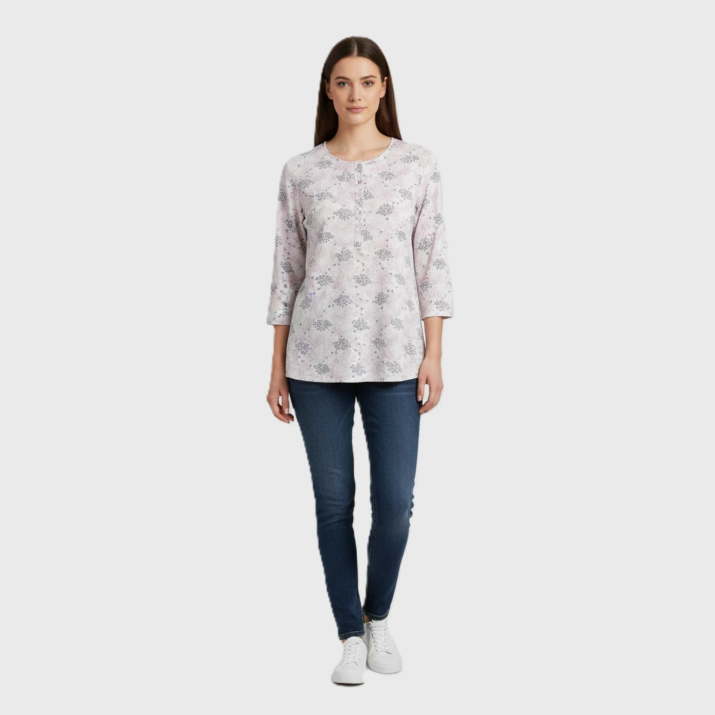 Hátulján hosszított, mintás női felső