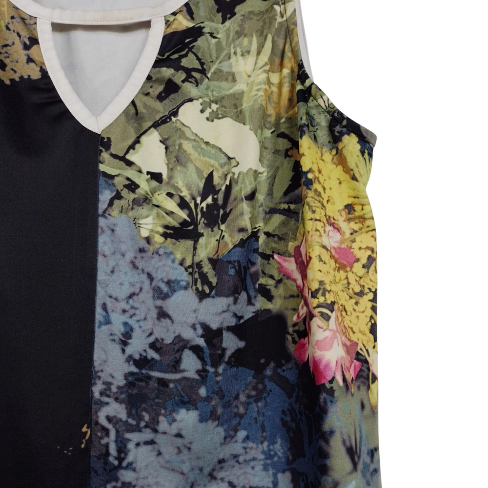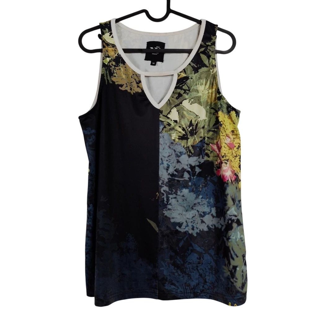 Spagettipántos, mellrészén mintás szegélyű női felső