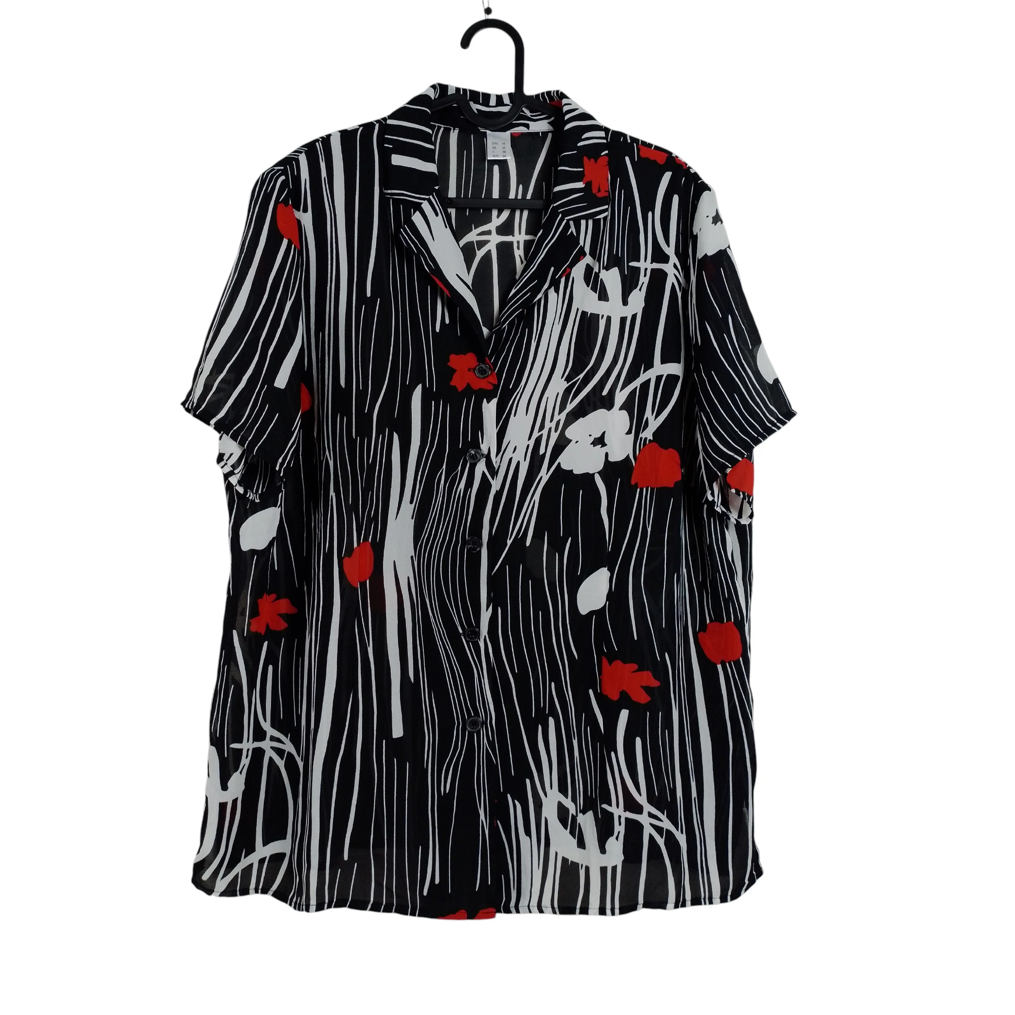 Anyagában mintás, elején gombos, áttetsző női felső