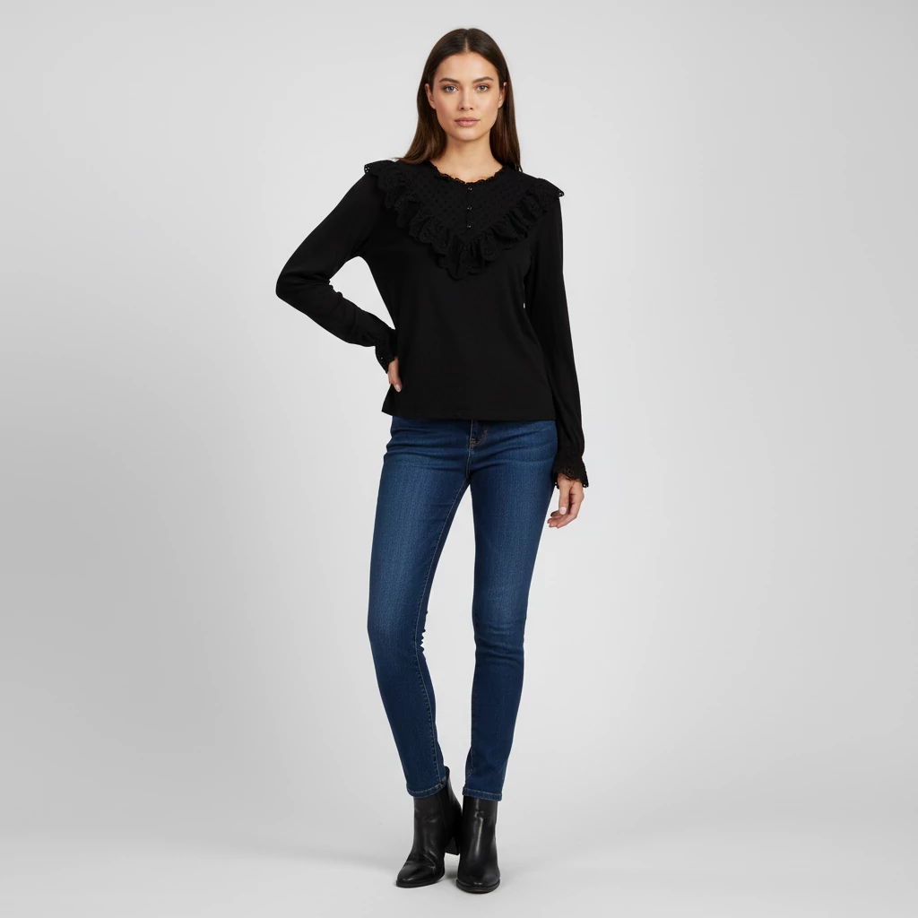 My Jewellery, fekete színű, hosszú ujjú női felső, M méret