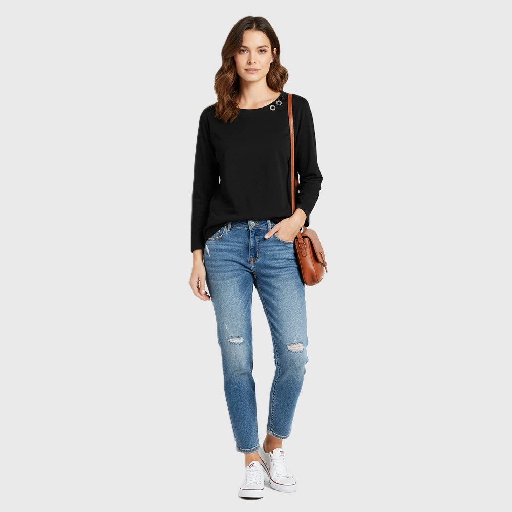 Lisa Tossa, fekete színű, hosszú ujjú női felső, XL méret