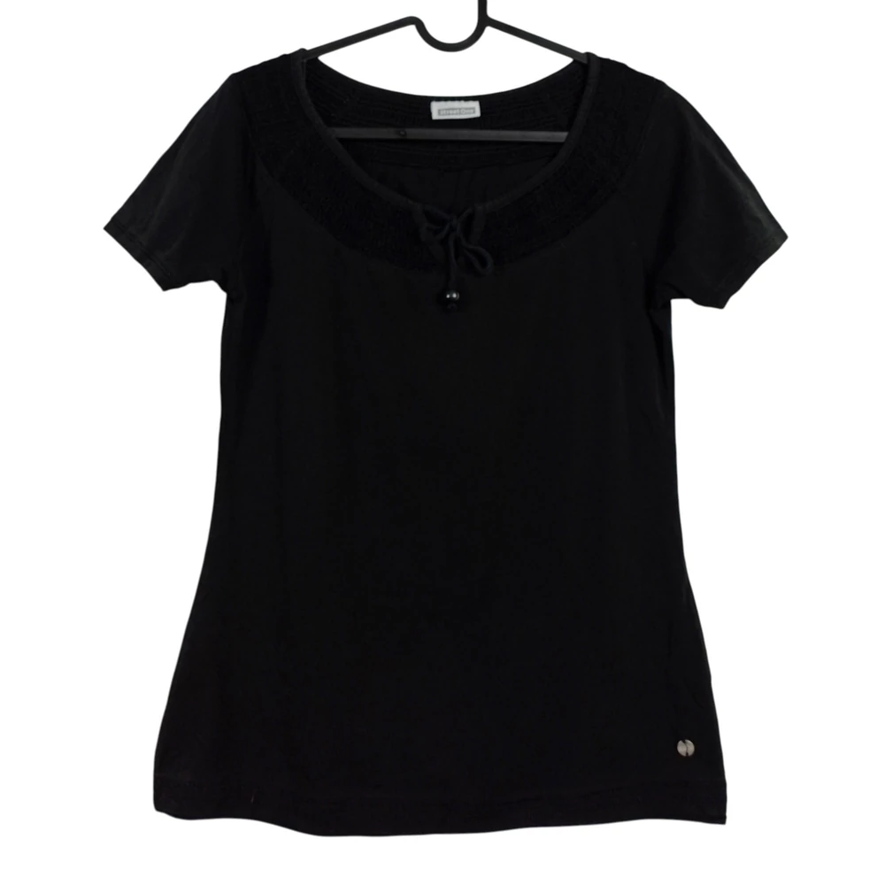 Spagettipántos, nyakrészén csipkével díszített női felső