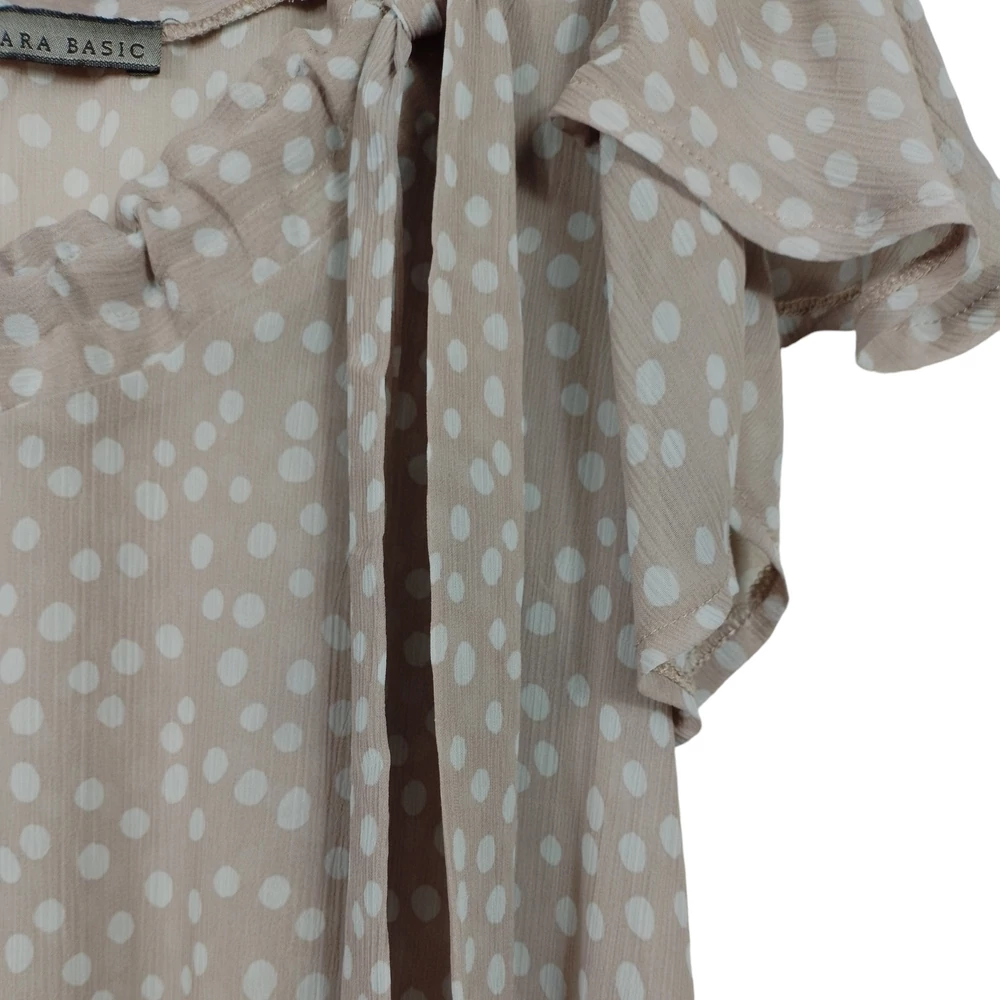Nyakrészén hátul megkötős, rövid fazonú, virágmintás női felső