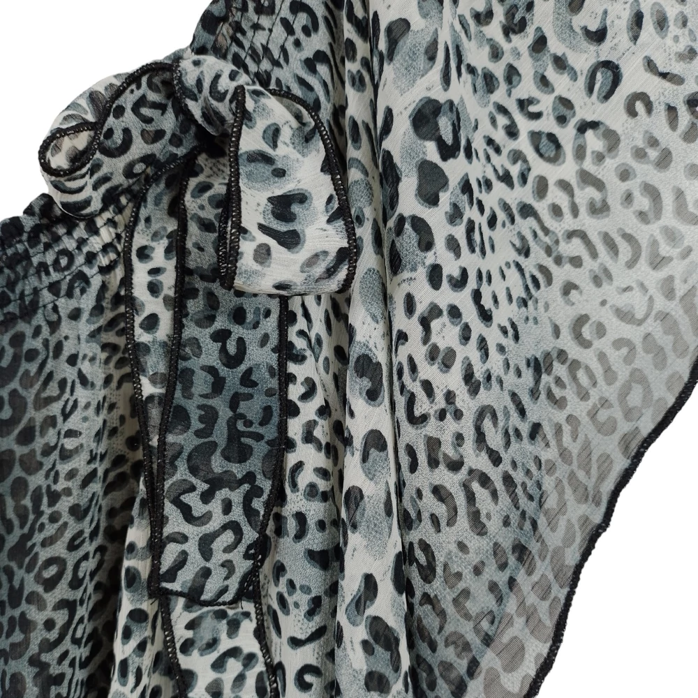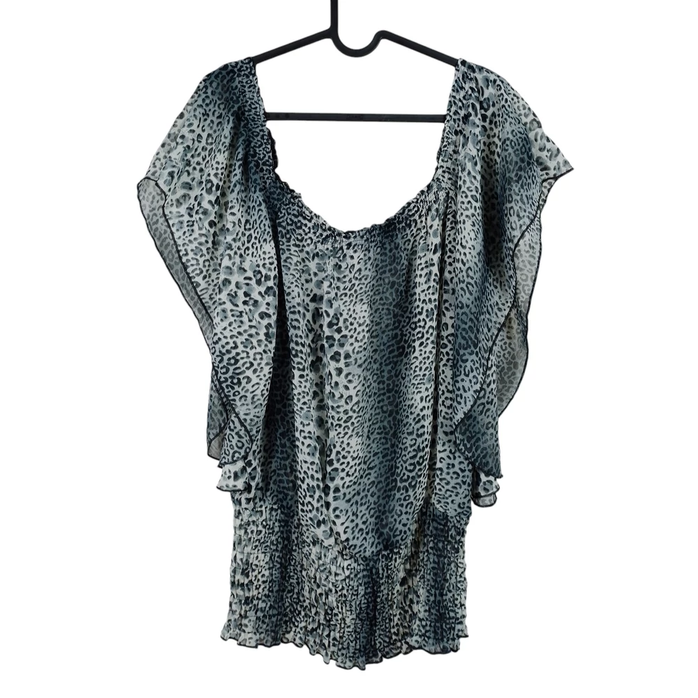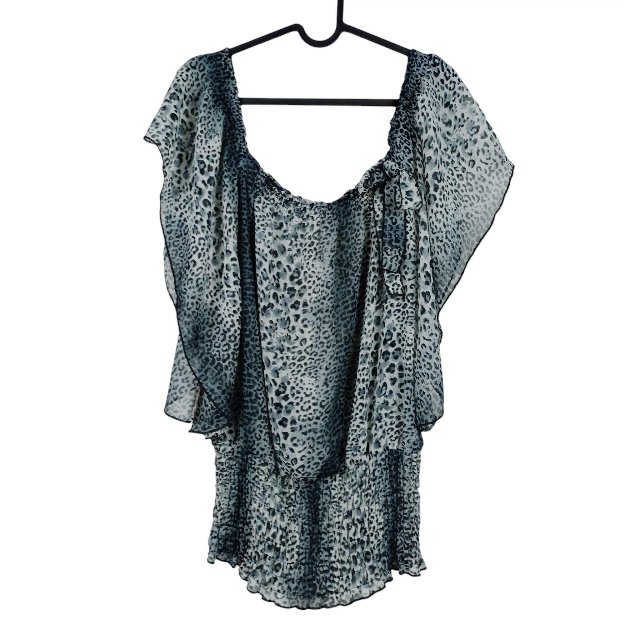 Ocelotmintás, denevérujjú, nyakrészén és alján gumírozott női felső