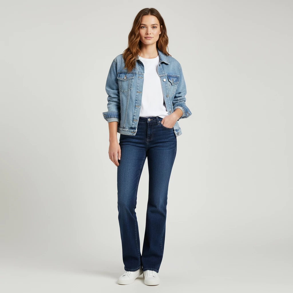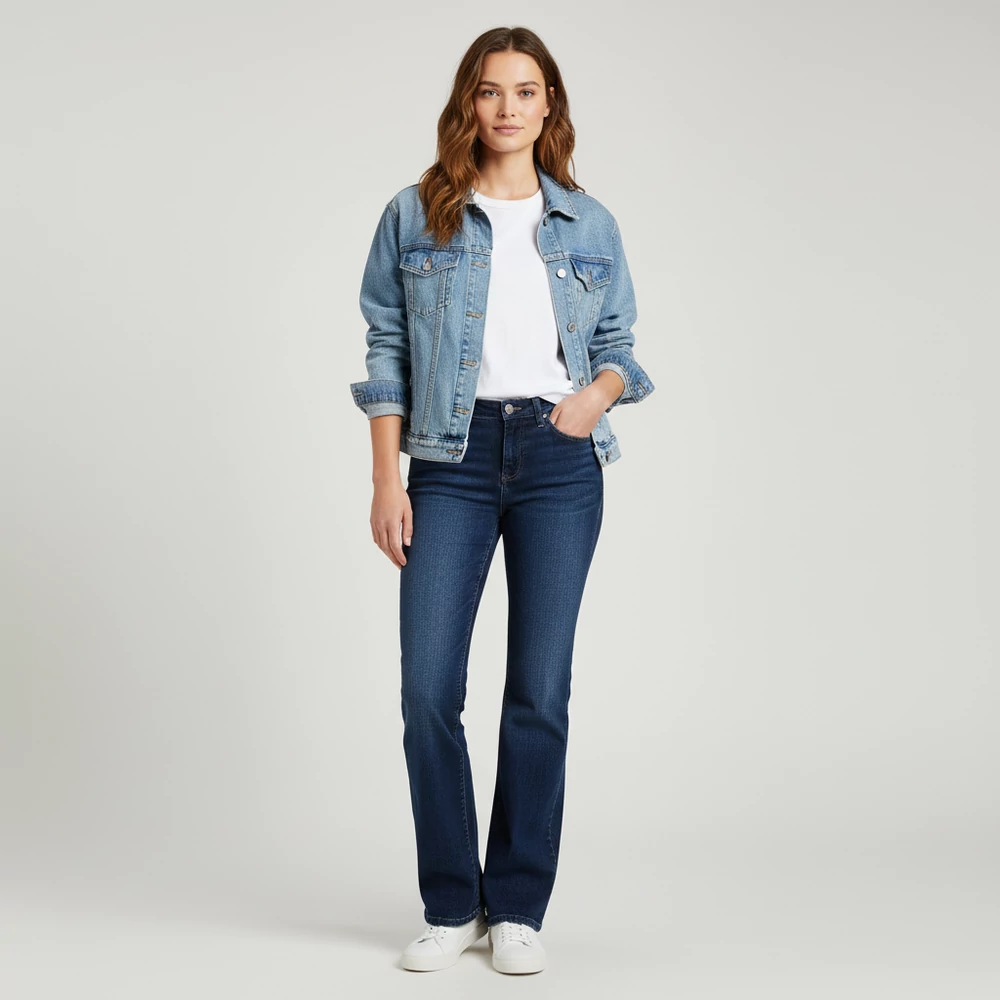 Kékesfekete színű, hosszú női farmernadrág, S méret