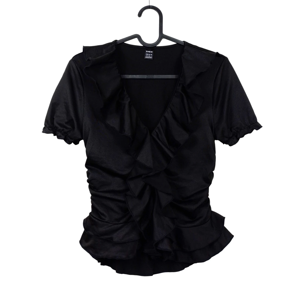 Shein, fekete színű, rövid ujjú női felső, M méret