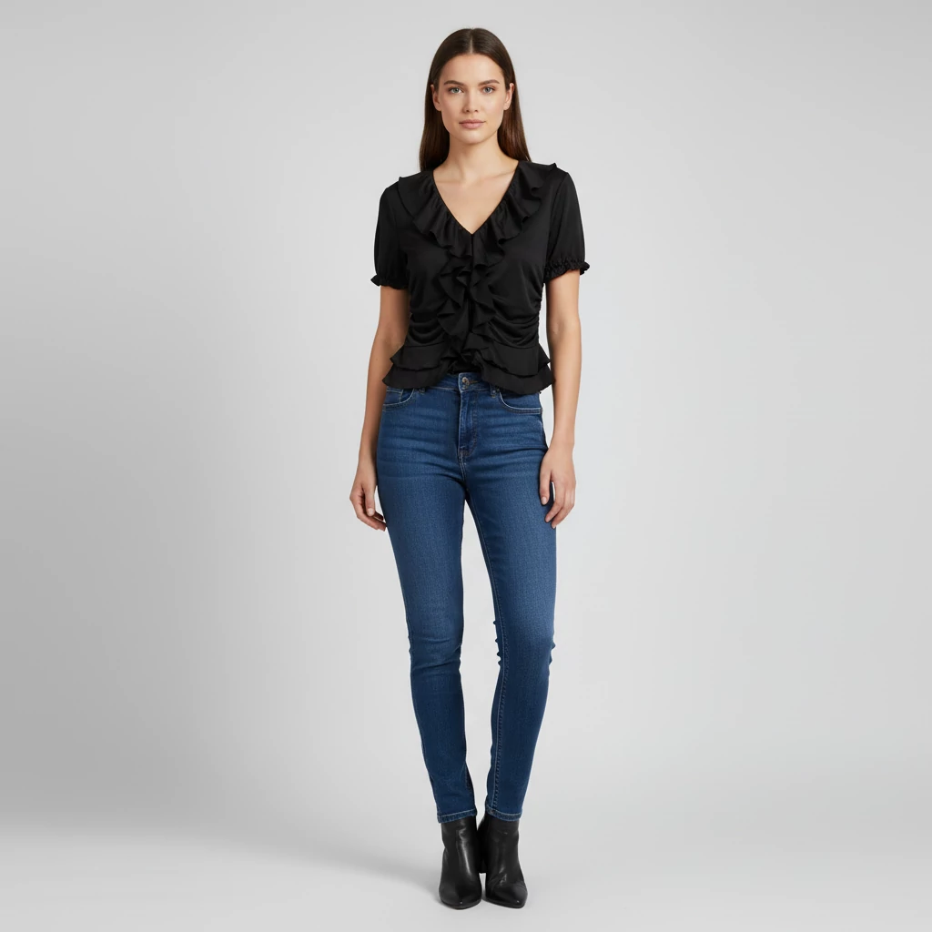 A termékfotón ábrázolt modell nem valós személy, mindössze az MI közreműködése által generált szimuláció és kifejezetten azt a célt szolgálja, hogy a ruhadarab egy outfit részeként történő viselés közben is bemutatásra kerüljön.