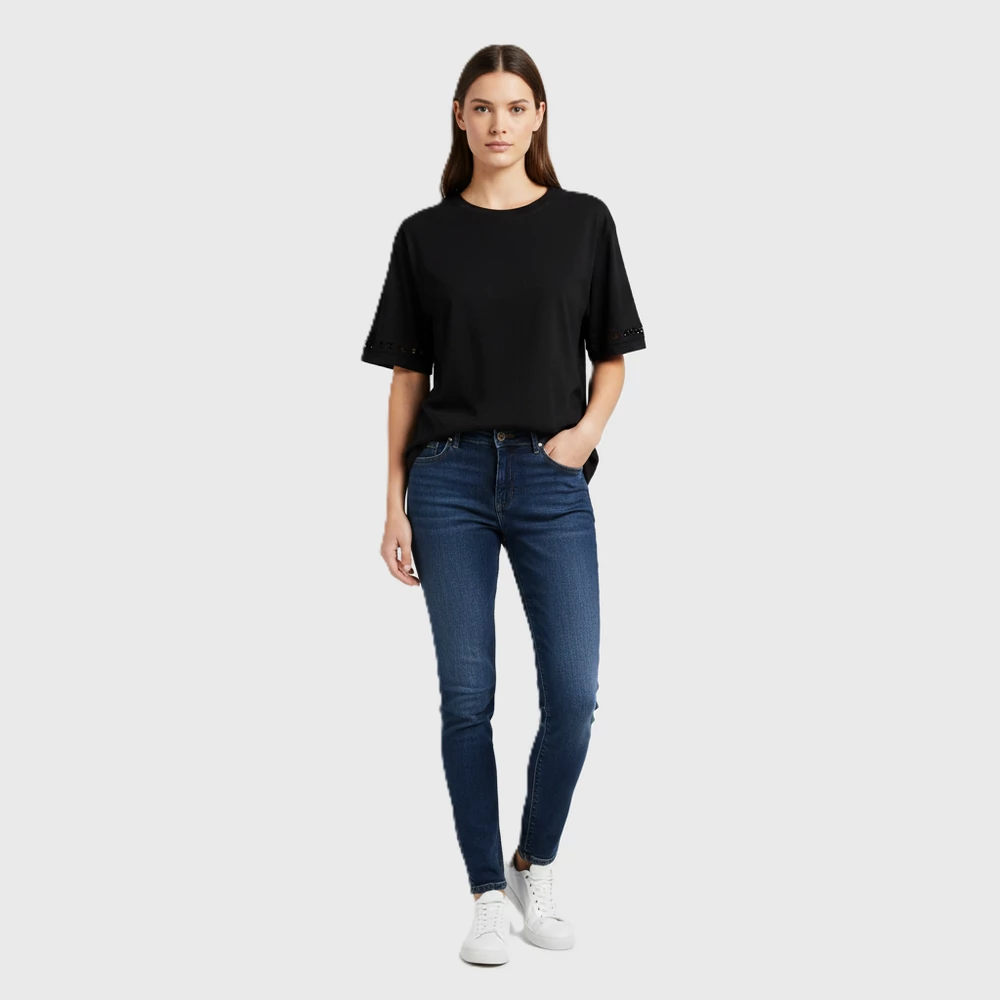 A termékfotón ábrázolt modell nem valós személy, mindössze az MI közreműködése által generált szimuláció és kifejezetten azt a célt szolgálja, hogy a ruhadarab egy outfit részeként történő viselés közben is bemutatásra kerüljön.