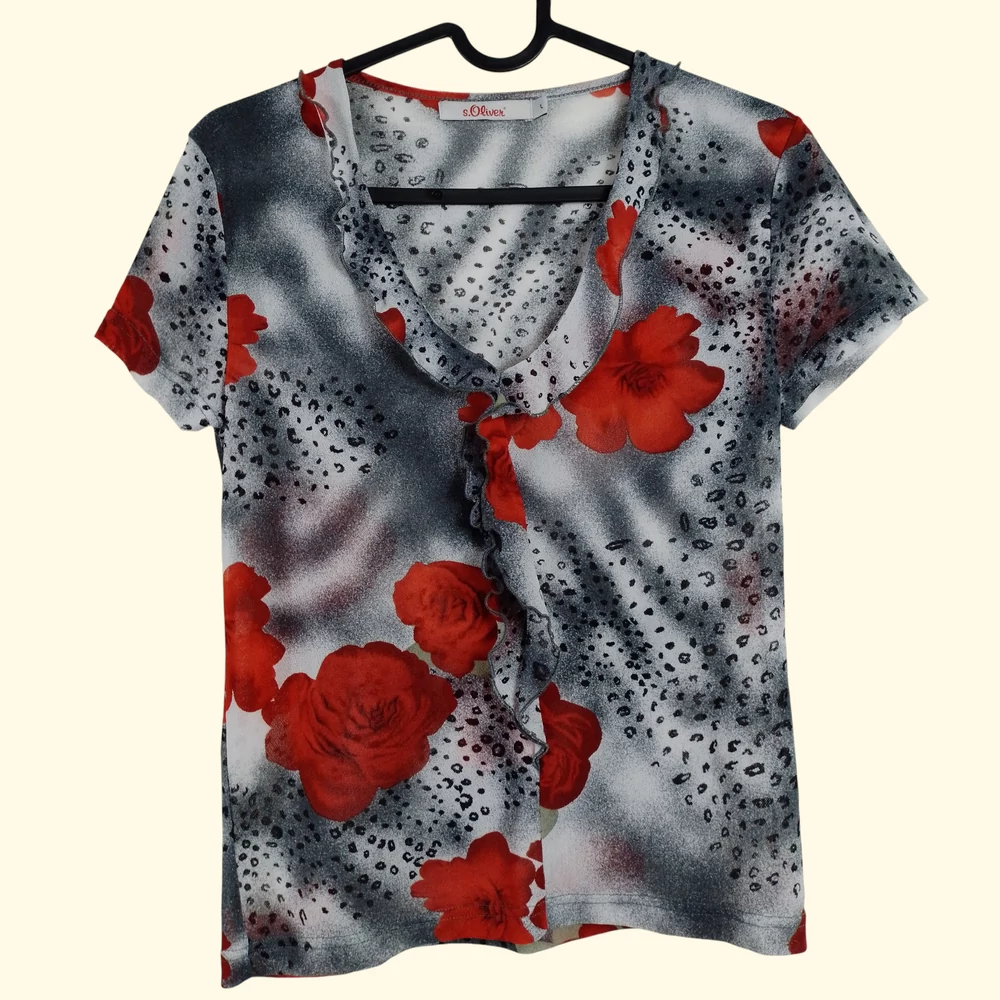 Rétegelt anyagú, hátrészén felsliccelt női felső
